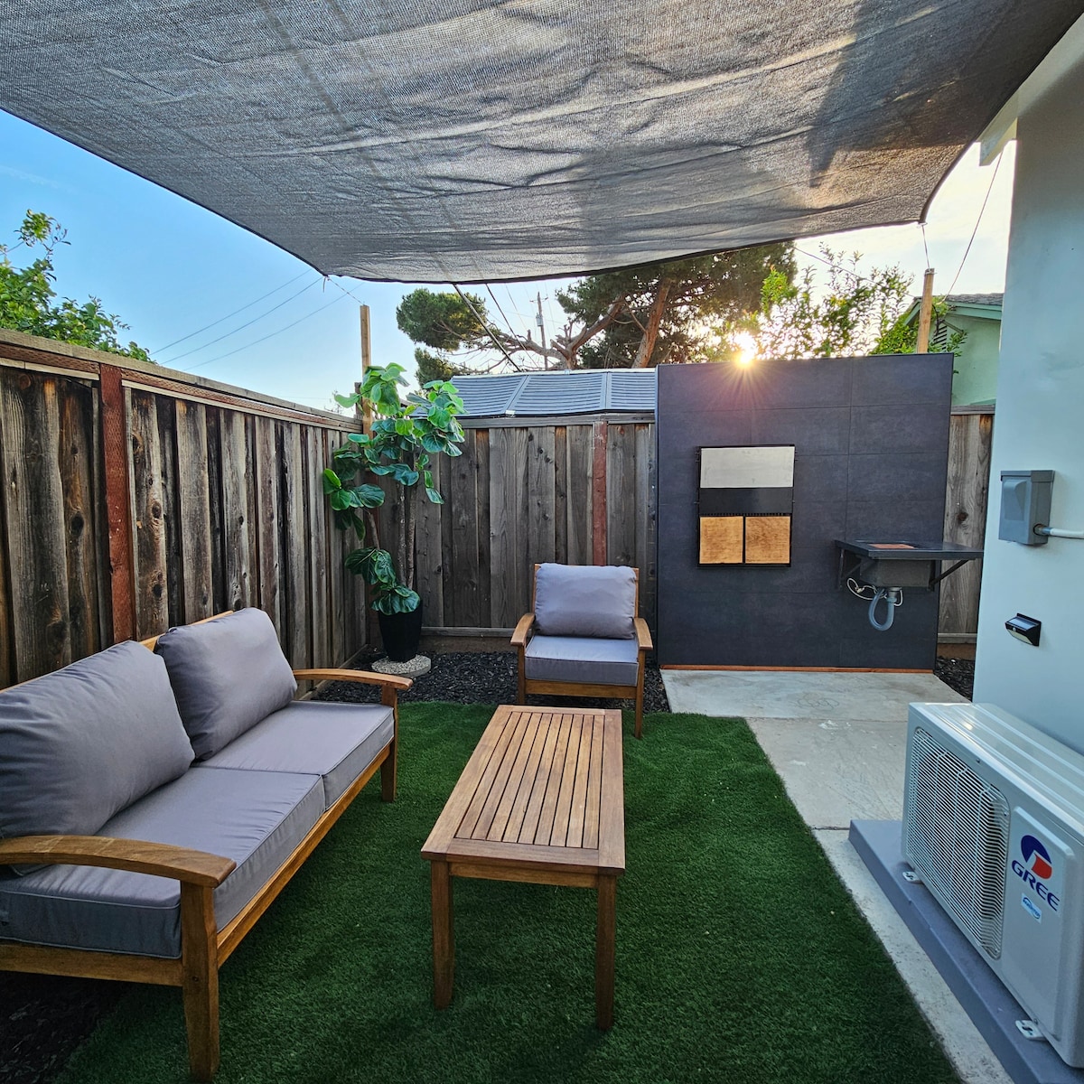Kick back and relax in this calm, stylish space. Brand new guesthouse build and landscape completed in 2023. Our guesthouse offers a full kitchen, WiFi, self check-in, FREE parking and washer and dryer. Tesla Universal EV charger Level 2 60 amp avilable for guest use. Centrally located in Downtown San Jose. A quick drive to the SJ airport, SAP Center, San Pedro Square, Levi’s Stadium, San Jose State University and Santa Clara University.