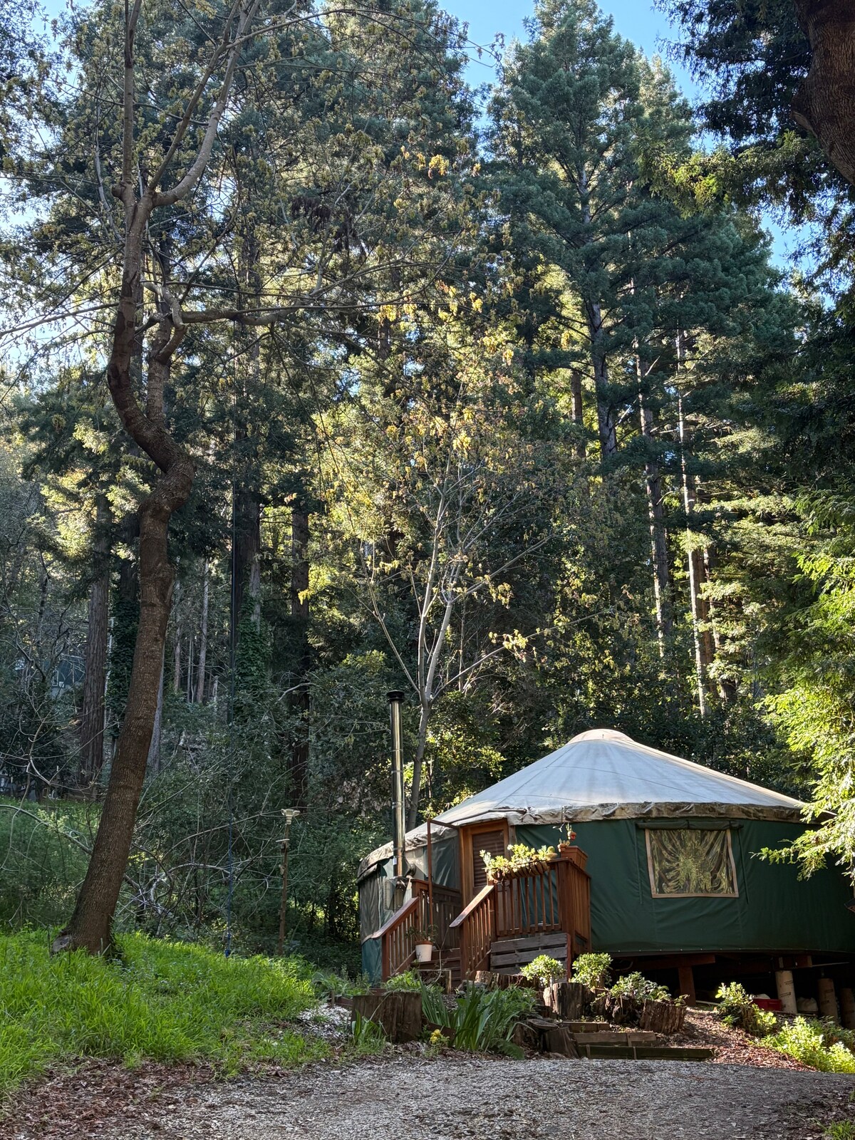 Peaceful, clean, spacious, beautifully decorated and quiet 24' Yurt completely surrounded by Redwoods on top of the Santa Cruz Mountains. Spend a couple days meditating, reading or writing the next chapter of your memoir. Walking distance to Mount Madonna Retreat Center (open now through reservation only). County Park hiking and horseback riding trails located within 3 miles. Ideal place for photography and mountain/road biking.