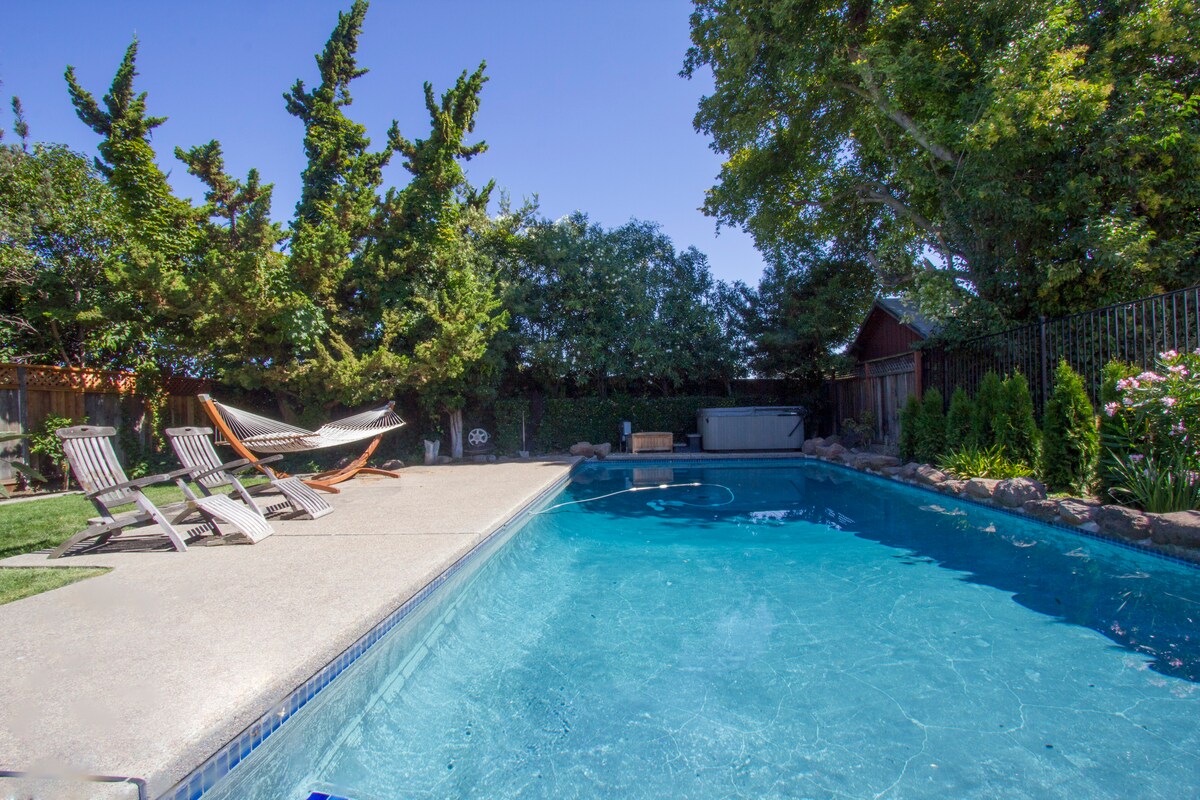 The Bangalore House is centrally located in the historic Rose Garden area. Enjoy the quiet Oasis, yet only minutes from SJC airport, freeways (101, 880), restaurants, cafes, mall, train, Avaya & Levi's stadiums, SAP & Convention Centers, downtown, Silicon Valley companies. Relax in a private room furnished for business leaders and discerning travelers. Many original paintings give the home an art-museum feel. Bonus amenities: refreshing black bottom pool, relaxing hot tub, sunny deck, hammock.