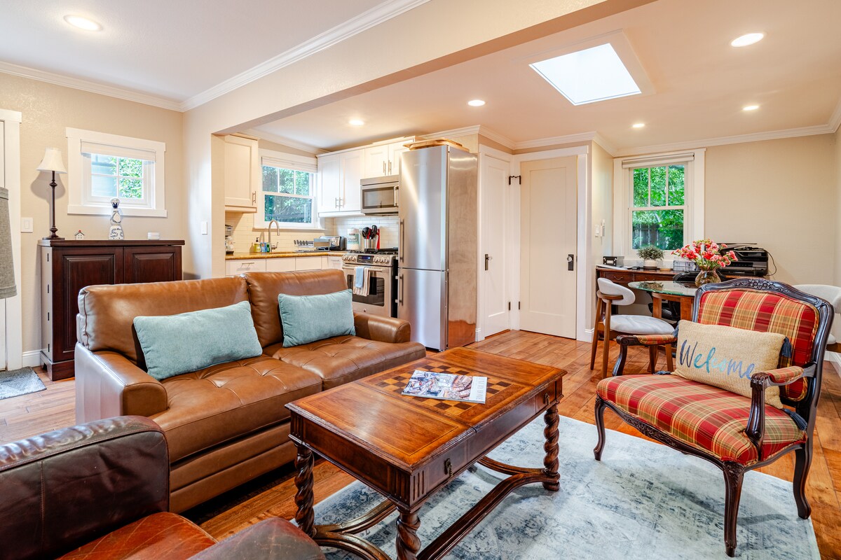 Beautifully remodeled, sparkling clean, and cozy private two-bedroom cottage with sweeping canyon and mountain views, located less than 2 miles from charming Downtown Los Gatos. Enjoy mornings with Nespresso coffee in the peaceful private yard, explore nearby parks, and access scenic hiking and biking trails just minutes away. Inside, the cottage offers a fully equipped kitchen, air conditioning in every room, and fast fiber internet. Santa Cruz Beach is a scenic 30-minute drive.