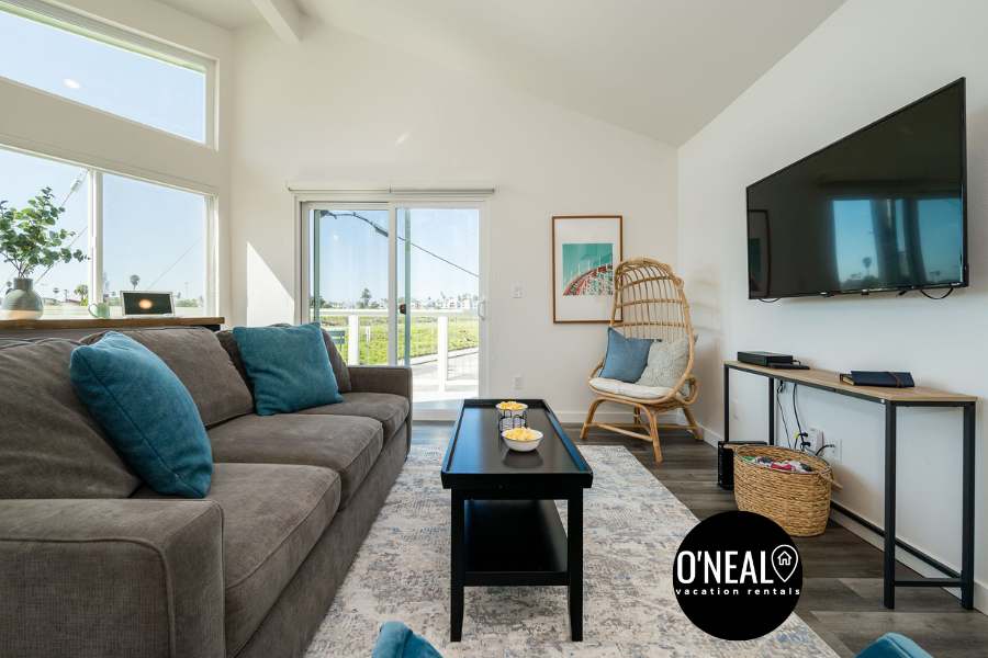 Spacious and modern 2 bedroom/ 2 bath Condo with high ceilings, a wall of windows and front balcony with an ocean view and overlooking the quaint Capitola village. 150 steps to the Beach, Capitola pier, boutique shopping and over 20 restaurants. Remodeled kitchen, gorgeous gas fireplace, WiFi, Big Screen TV and a back patio with a gas BBQ grill. Perfect for families, couples or girls/guys getaways! Sleeps 6 comfortably. Covered tandem parking for 2 cars. Renter must be at least 25 years old.