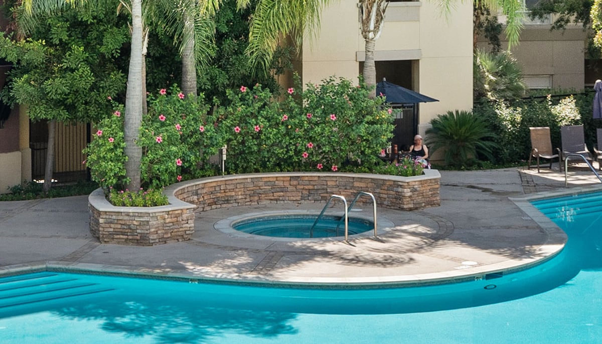 NEWLY RENOVATED in Valencia only five minutes away from Six Flags Magic Mountain and Hurricane Harbor water park. Across the street lies Westfields Shopping Center with a cinema and a great selection of restaurants and bars. This 1192 sqft condo overlooking the pool is easy to find, with short distance from two designated parking spots on the same floor as the condo. Other amenities include high speed internet, a business center, recreation room, and movie theater. Netflix, Hulu, Disney+