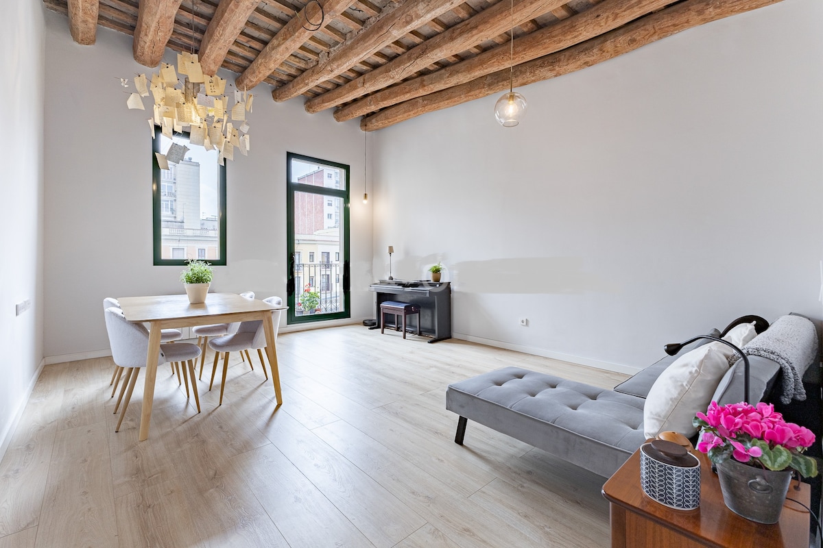Stylish apartment on a semi-pedestrian street in the iconic Gracia neighborhood, 800 meters from Sagrada Familia and Hospital de Sant Pau, and a 20-minute walk to Parc Güell or Passeig de Gracia. Comfortable, quiet, and elegant, the apartment is fully renovated. It features a queen-size bed, high-quality linens and towels, AC, kitchen, and sofa bed. Enjoy 2 SmartTVs (Netflix, HBO...) and high-speed Wi-Fi. This cozy apartment offers access to a beautiful, dynamic neighborhood from a serene street