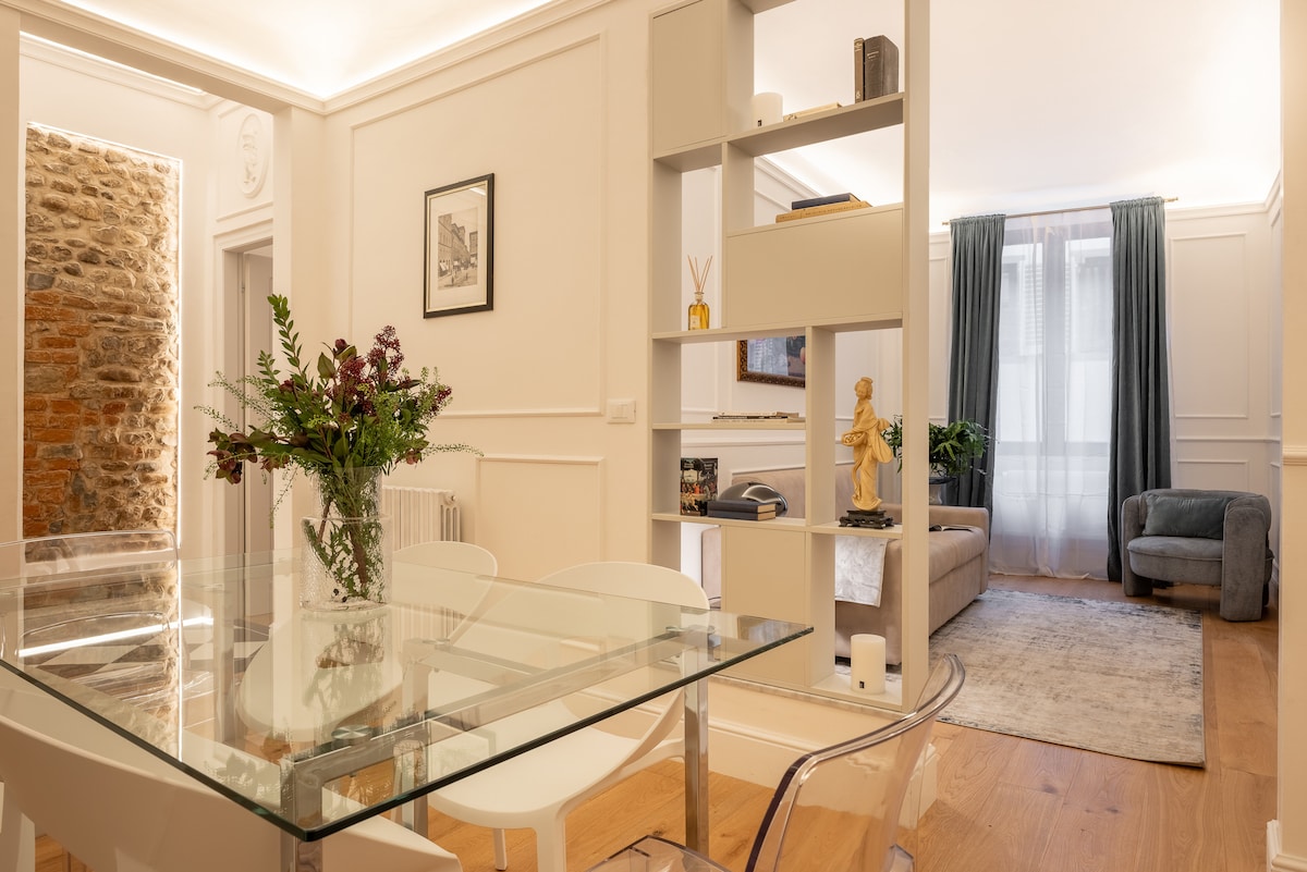 A wonderfull brand new apartment on the 4th floor without elevetor. 1bedroom, 1,5 bathrooms, 1 kitchen and a livingroom with a sofabed. Perfect for who is traveling with friends or family. Rilassati e ricaricati in quest'oasi di quiete ed eleganza. Magnifico appartamento situato al 4 ed ultimo piano senza ascensore. 1 camera, 1 cucina, 1 bagno ed un salotto con divano letto. Perfetto per chi viaggia con la famiglia o con amici!