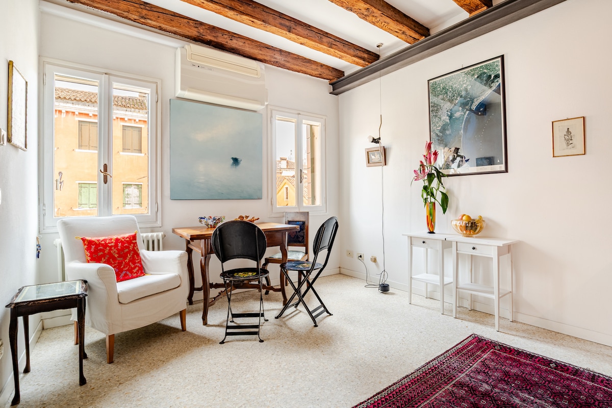 CANAL VIEW NOT TO BE MISSED 👍 The beautiful canal view will make your stay truly unique. Spacious and bright apartment located in the heart of Venice, perfect for experiencing the city like a true Venetian. Elegant finishes, a large living room and a fully equipped kitchen offer comfort and space. Fresh fruit and vegetable markets and a supermarket are just a short walk away. Ideal also for longer stays, with a sofa and a dedicated work area.