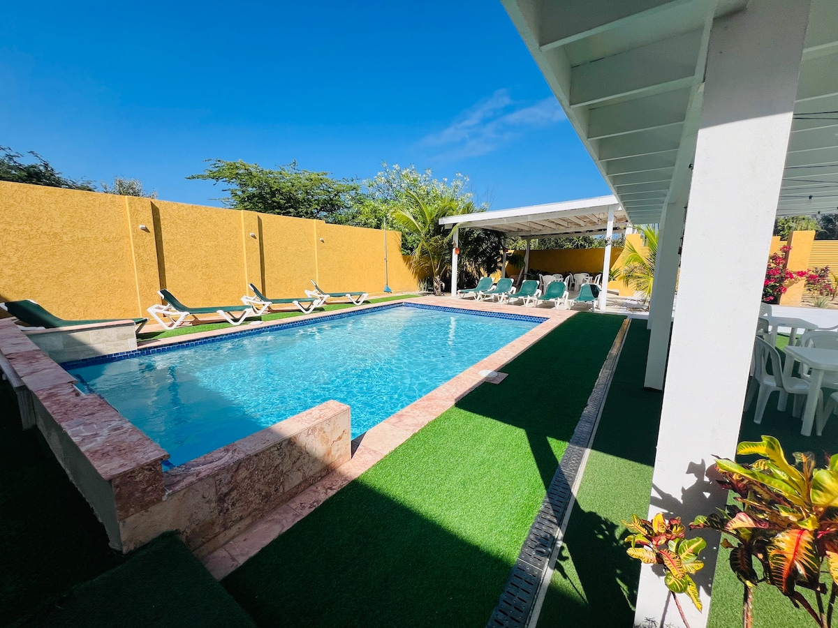 Yellow Escape, your unique Vacation Home in Aruba! Our two bedroom home is warm and welcoming. It comfortably sleeps 4 persons and is centrally located in a quiet, peaceful neighborhood and surrounded by nature. We are only 5/10minutes from the nearest beach which is Mangel Halto! And also 10-15 minutes from other white sandy beaches!