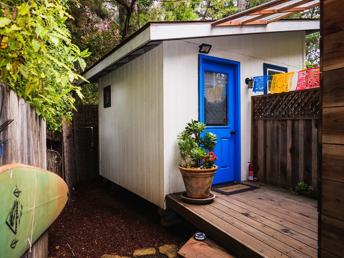 A simple and cozy abode for couple's getaway, outdoor enthusiasts, or solo travelers. Tucked away in a residential cul-de-sac with easy access to the harbor and local beaches via 2 complimentary beach cruisers. Completed with a semi-outdoor restroom and hammock, the Savasana Studio is a great alternative for a relaxing and cost-effective way to stay in Santa Cruz!