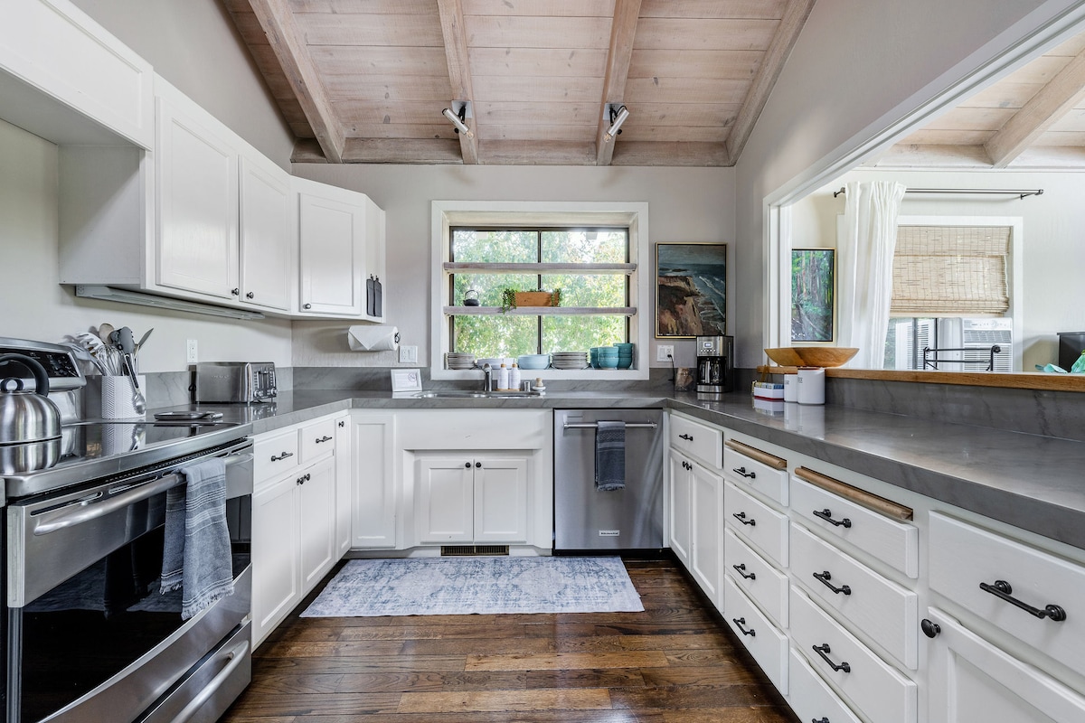 Escape to Beach Hill Hideaway, a light-filled, 2,000 sq ft 3 bedroom/2 bath coastal home in Santa Cruz. Perfect for families and friends, this stylish retreat comfortably fits your group and is just steps from the Beach Boardwalk, Wharf, and downtown. Enjoy a fully-equipped kitchen, free on-site parking, EV charger, air conditioning, outdoor shower, BBQ and fire pit, TV with Roku, piano, books/games, yoga mats, and dedicated workspace. Walk everywhere from this prime location!
