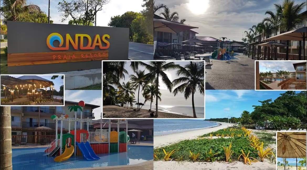 Alugo no Ondas Praia Resort - Porto Seguro, BA Desfrute da belíssima Praia do Mutá! Apartamento para 5 pessoas com quarto, sala, cozinha, ar-condicionado, Smart TV e varanda. Resort pé na areia com piscinas, hidromassagem, academia, espaço kids, quadra e recreação diária. All-inclusive opcional com café, almoço, jantar e petiscos. Perto do Centro Histórico, Arraial e Trancoso.