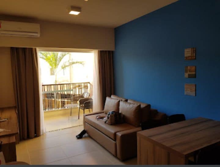 Siga-nos @BRISAEMARFLAT_PORTOSEGURO Seja bem-vindo(a) à melhor unidade do Apart Hotel Boulevard da Praia, em frente à praia de Taperapuã, uma das melhores praias de Porto Seguro. Um apartamento recém-renovado, aconchegante e bem equipado com as comodidades que um hotel oferece, como café da manhã e serviço de limpeza, tudo isso já incluso no valor da diária.