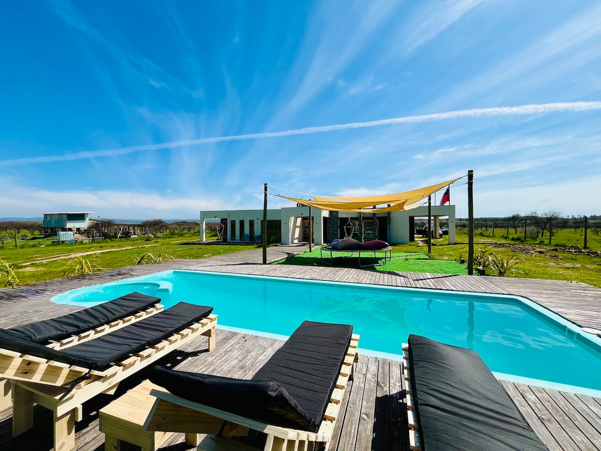 Lodge Acacia Caven Un espacio de lleno de tranquilidad y confort ,conectado con la naturaleza, a 4 km del centro de de ciudad de Santa Cruz, ubicado en parcela de agrado privada. Casa de 100 metros cuadrados con Hot Tub externo, Terraza, Fogón, estacionamiento propio, zona para asado y entrada independiente.
