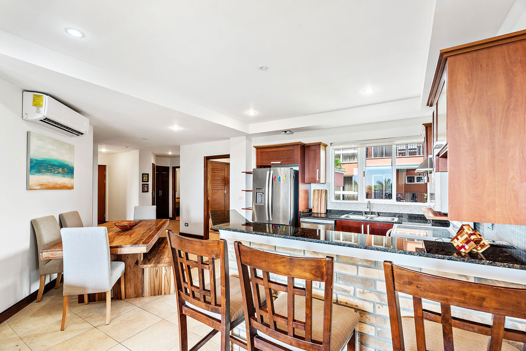 Here Comes the Sun, Little Darling! *Gated Condo Complex with 24/7 security *Cozy, air-conditioned, sleeps 6, perfect for families or couples *Only 200 meters from 2 stunning beaches, Playa Penca and Playa Potrero *Steps away a salt water pool *Walking distance to many restaurants *King Bed in the Master, Bunk bed and Queen bed in 2nd bedroom, trundle bed sofa in living room, Pack & Play *Stainless steel appliances, TV with Netflix, beach equipment, WIFI *Pets Welcome for an additional fee