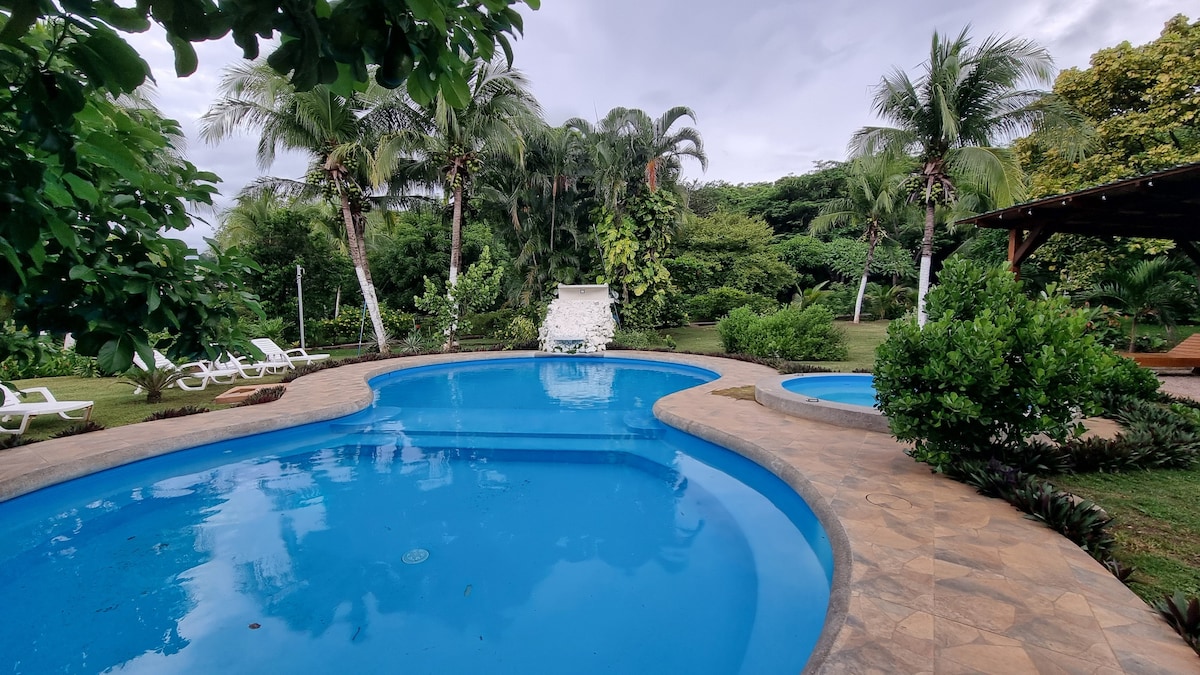 A spacious open-concept studio that's a 2-minute walk to Guiones beach. Features WiFi, TV, A/C, full kitchenette with oven, and covered patio surrounded by tropical gardens. Set on the property of our local surf resort, on-site you’ll also find a pool, open-air rancho, café, and surf shop (providing rentals and lessons). More restaurants and shopping are a short stroll away. Ideal for solo travelers, surfers, couples, families or small groups looking to enjoy our beautiful surf town in Nosara.