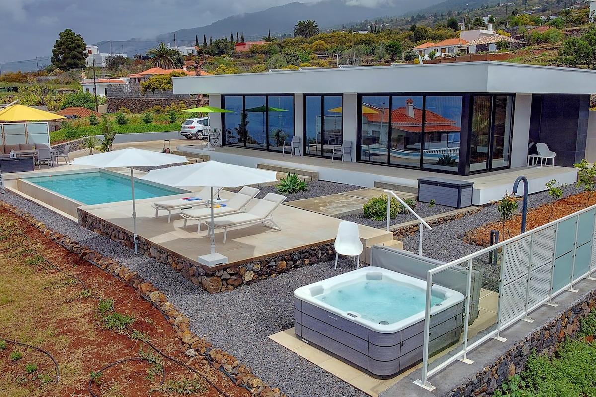 Exclusiva villa totalmente equipada con todas las comodidades ubicada en una tranquila e intima finca de cultivo artesanal de plátanos. Recientemente construida con materiales de la mejor calidad es la representación perfecta de la modernidad y comodidad. Esta preciosa propiedad de alto nivel cuenta con amplios ventanales que bañan de luz natural todas las estancias. Dispone de Wifi , Smart TV, piscina privada, zona chill out, etc.
