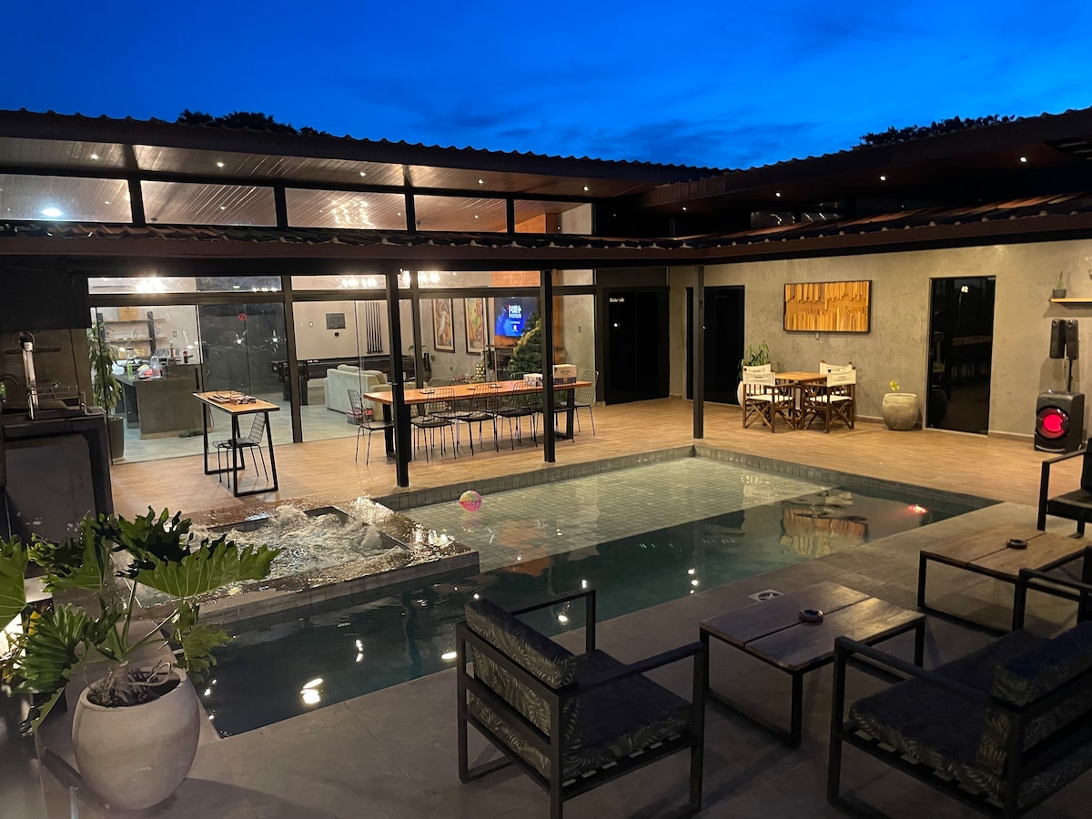 Apollonio es una casa de campo para 12 personas, ubicada en Santa Cruz a 10 minutos de Warnes y 6 minutos de La Bélgica. Ideal para realizar juntes familiares o con amigos, celebrar cumpleaños. Piscina, jacuzzi con hidromasaje, aire acondicionado en toda la casa, internet wifi, Tv cable, equipo de sonido, mesa de billar profesional, mesa de ping pong, dardos, churrasquera, caja china, grill eléctrico, chimenea, habitaciones con a/c con baños privados y compartidos.