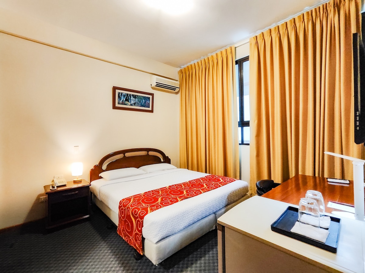 Amplia Habitacion doble con Bano privado y cama Queen con capacidad para 2 adultos. La habitacion se encuentra en un hotel 4 estrellas con excelente ubicación, seguridad y atención. La Habitacion tiene una decoración moderna y muy nueva, las sabanas son de primer calidad y todos los amenities estan incluidos. Los huespedes tendrán acceso a todas las areas comunes del hotel.