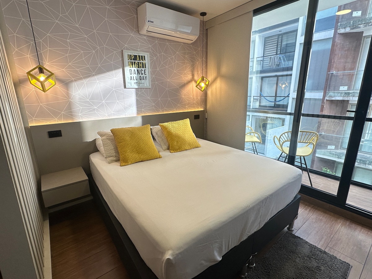 POR FAVOR, leer bien el anuncio antes de reservar. Amplio, cómodo y céntrico Monoambiente recién remodelado para MÁXIMO DOS PERSONAS. Cuenta con Aire acondicionado, smart TV de 32” , cocina equipada con lo básico para cocinar comidas no muy elaboradas, baño privado y Wifi. Ideal para estadias cortas de viajes de paseo o de negocios. Por la puerta de la casa pasan gran cantidad de buses lo que facilitará su movimiento para recorrer la ciudad