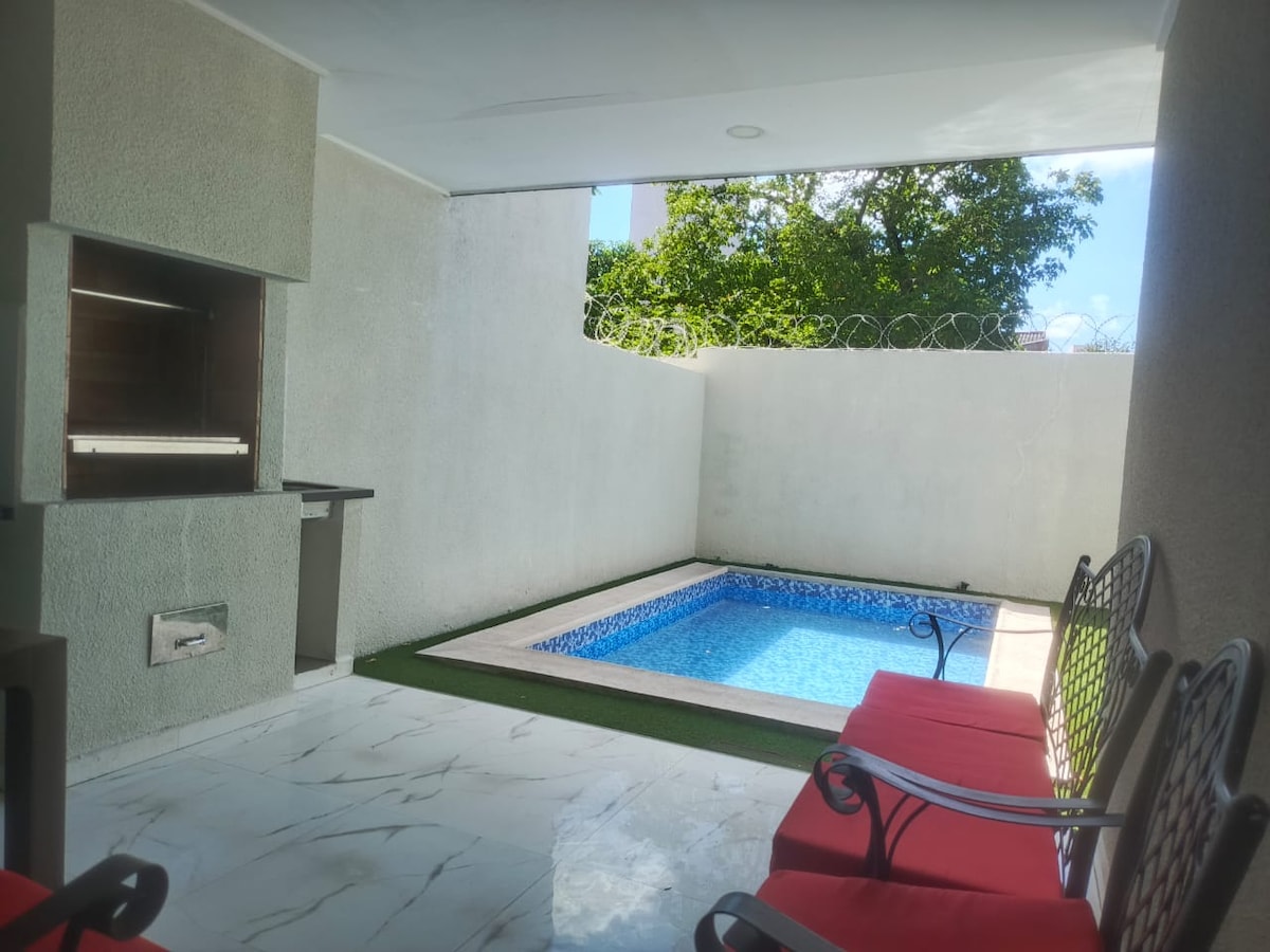 This House is just 5 minutes from Viru Viru airport, and 10 minutes from the city center. It is 12 minutes from the Hotel los Tajibos. This Village has private access, Electric Gate, BBQ Steakhouse, Pool private, Wifi, Full Kitchen, air condition in All room and living room, Very much like being at home. You can receive visits 24 hours a day.