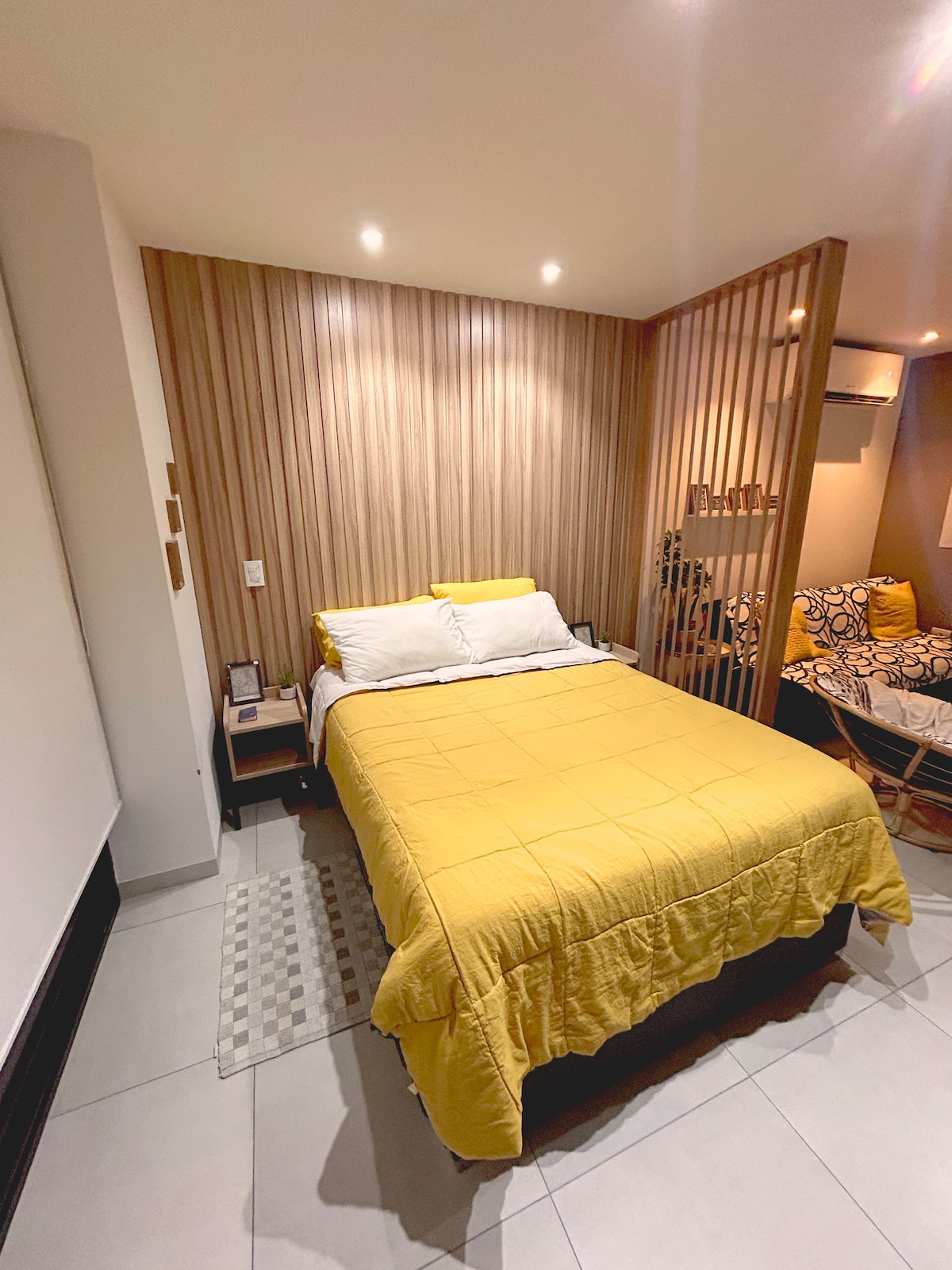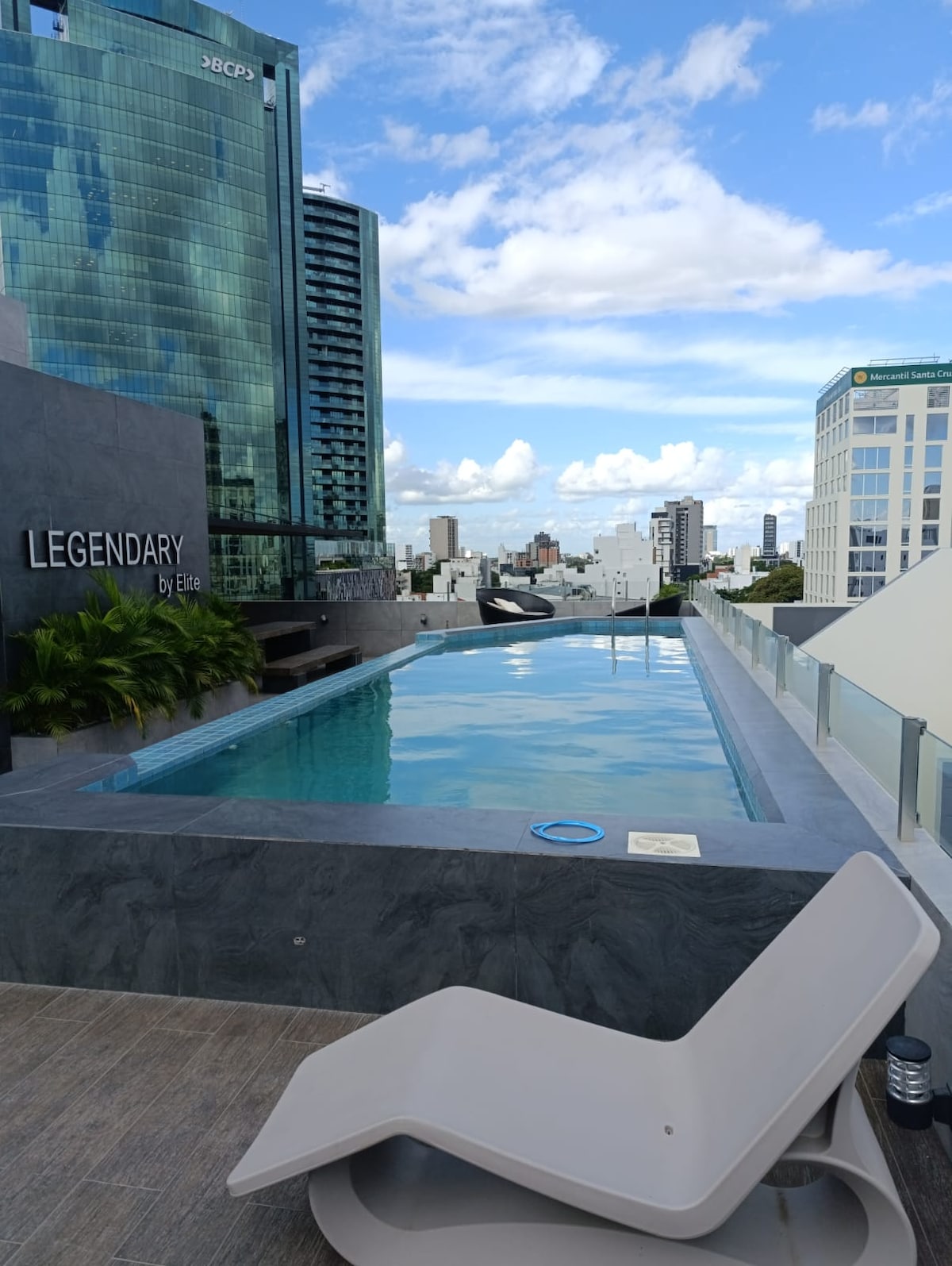Monoambiente completamente amoblado con ubicación estratégica. ¡Tu visita a Santa Cruz de la Sierra será inolvidable! Nuestro Studio está preparado para que aproveches al máximo tus días en la ciudad. Equipado con una cama de 2 plazas y un cómodo sofá-cama, área de guardado, cocina, heladera, microondas, y un baño. En el edificio contamos con espacios de Co-Work, lavandería, áreas sociales cerradas y abiertas y una amplia piscina con vista al barrio mas lindo de Santa Cruz.