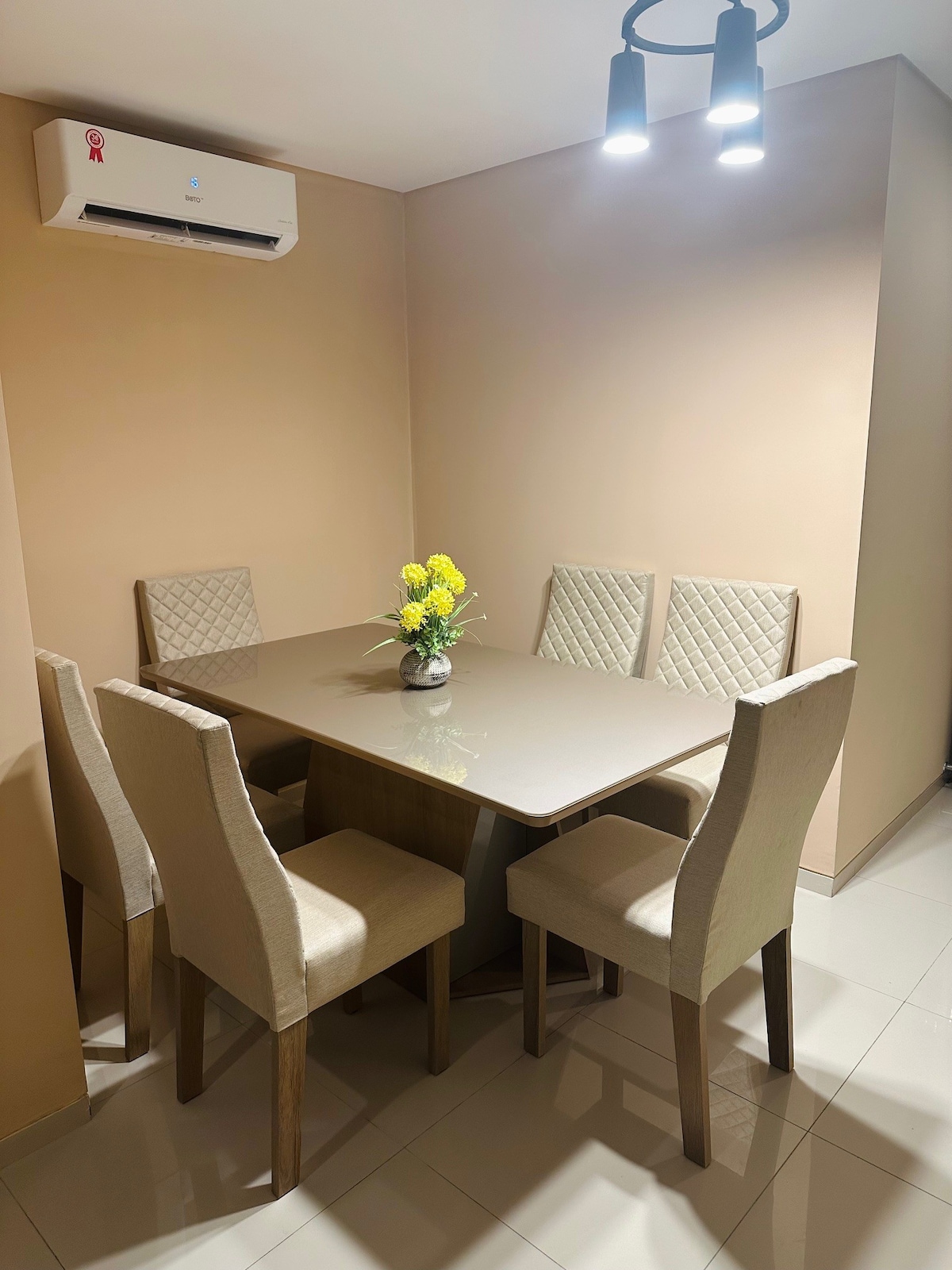 Este acogedor espacio cuenta con: Una cama doble; WIFI de alta velocidad ideal para trabajo y diversión; Cocina equipada; Un sofá/cama muy cómoda; Lavadora; Aire acondicionado; Televisor de 55"; Sala de coworking; Pileta y Parrillero. Estarás a pocos pasos del Mall Ventura y cerca de restaurantes populares como "Pizza Hut" y "Starbucks". Además, tendrás acceso rápido a supermercados, plazas, gimnasios y una variedad de centros comerciales. *El uso del parrillero tiene un costo adicional.