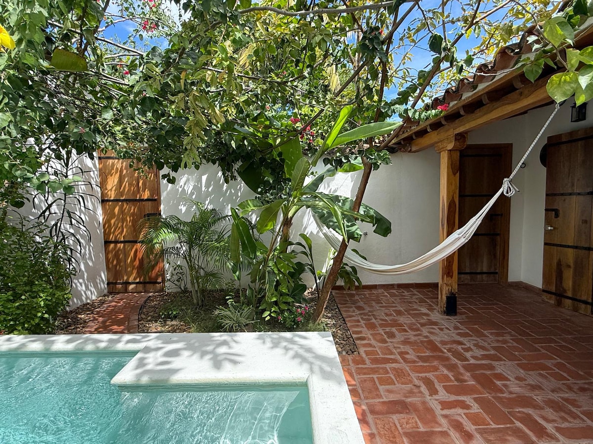 Hébergement avec jardin entièrement privé, entouré d’une végétation luxuriante et de murs garantissant une intimité totale, aussi bien dans la chambre que dans la piscine. Situé dans le centre historique de Mompox, à côté de l’église Santa Bárbara et du bord du fleuve Magdalena, vous pourrez y vivre comme Adam et Ève dans le jardin d’Éden. Une terrasse ombragée avec hamac et table vous attend pour prendre le petit-déjeuner dans le jardin, avec vue sur le clocher de l’église Santa Bárbara.