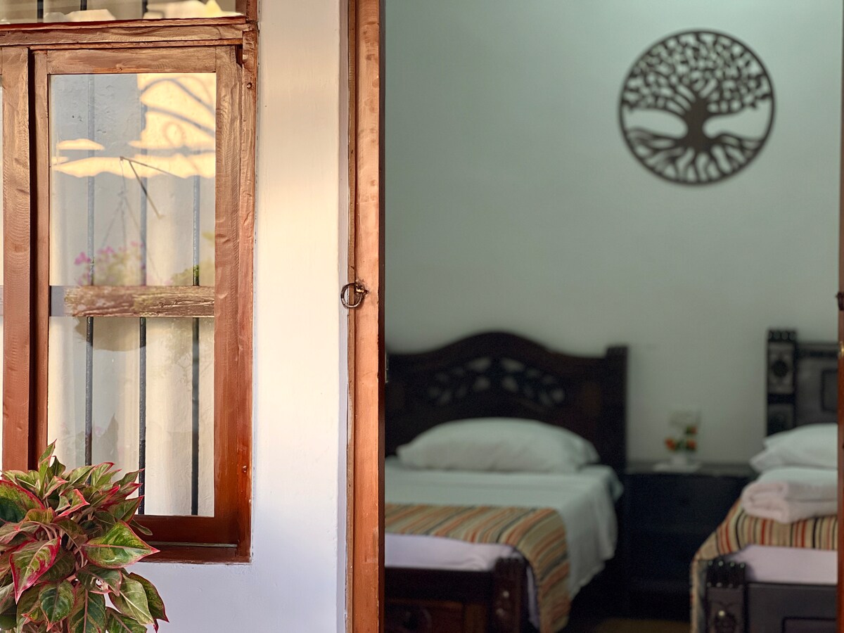 HOSTAL LA CANDELARIA Habitación privada con dos camas sencillas en Mompox. La habitación tiene ventilador (sin aire acondicionado) y baño compartido. Ubicada a dos cuadras del centro histórico de Mompox. Disfruta de la tranquilidad y buen ambiente del sector. Tienes acceso a cocina compartida, el rancho de la casa y otras zonas comunes y wifi. Hay parqueadero gratuito con reservación previa. Te estaré esperando :)
