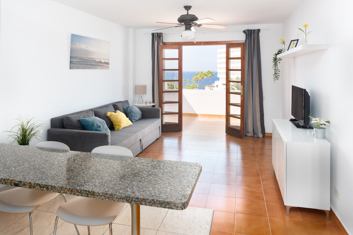 We are welcome you to our Modern new apartment in Costa Adeje. Apartment located in the quite complex with heated pool and magnificent sea views. It consists of living room with kitchen zone and living room with double bed. In the evening you can enjoy beautiful sunset views from your dining table on the balcony.
