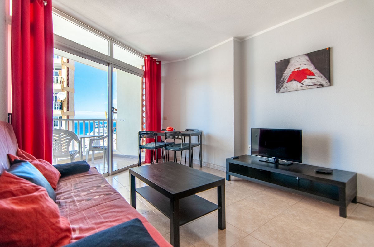 Checkout my fully equipped 1 bedroom newly renovated and comfortable apartment in the heart of Playa de las Americas (the most vivid region) in Tenerife just 1 street from the sea! Enjoy the direct ocean balcony view, a king size anatomic double bed, free Wifi up to 300Mbps, free access to the pool, free parking, new IKEA kitchen with oven and all kitchenware of highest quality, new electric appliances, sleeping sofa, laundry, LCD TV and much more!