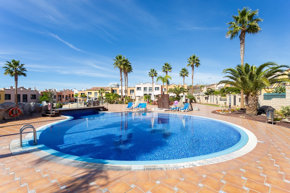 Esclusiva casa di 185mq con terrazza e jacuzzi panoramica. Godetevi la sala multifunzione insonorizzata con cinema, PlayStation e area party! Relax assicurato con piscine condominiali, barbecue nel cortile tropicale e interni eleganti. Dotazioni premium: cucina completamente attrezzata, aria condizionata in ogni stanza, garage privato, Wi-Fi veloce e lavatrice/asciugatrice. L'ambiente perfetto per momenti indimenticabili con amici o famiglia, a breve distanza dalle attrazioni di Costa Adeje.