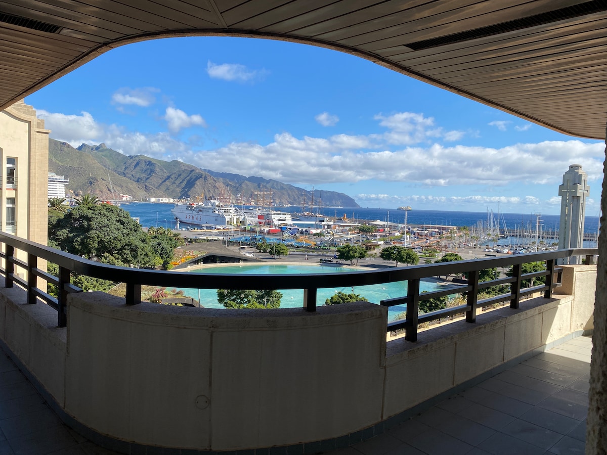 STUDY of 40 m2 with amazing sea VIEWS over the Atlantic, on the Av. Maritima in Santa Cruz de Tenerife. INTERNET fiber optic. Smart TV and NETFLIX account. NEW AIR CON King size bed. Fully equipped kitchen. Balcony. Wash/disher machine. Hairdryer :)