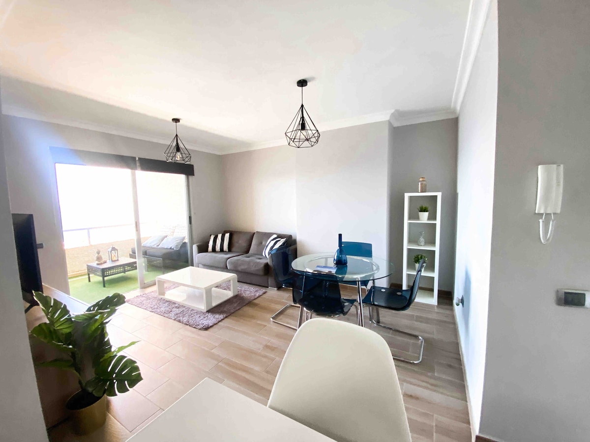 Fantástico apartamento, luminoso, amplio y acogedor con vistas al mar y a la puesta de sol en una zona tranquila. Sunset cuenta con dos dormitorios y dos baños, salón-comerdor y cocina en el mismo ambiente y una amplia terraza de 14 m2 donde disfrutar de las fantásticas vistas y además por la tarde de la puesta de sol. Dispone de INTERNET POR FIBRA, dos Smart TV, cocina totalmente equipada con placa, horno, microondas, lavavajillas, lavadora y pequeños electrodomésticos. Garaje.