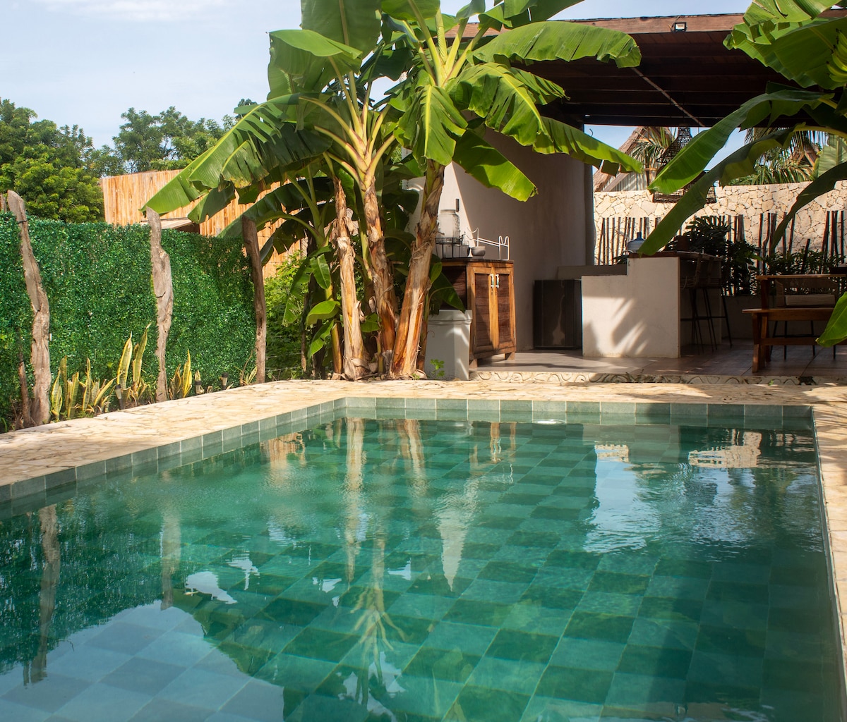 Beach House with 3 bedrooms and office, pools surrounded by nature, a rooftop with jacuzzi and minigolf. Perfect to watch the sunset with your loved ones! The home office has highspeed internet, ideal to work remotely while your family enjoys paradise. 2 minute walk from the home is our private community beach club with infinity pool, kid's pool, dock and beach access which you can enjoy at any time. The beach club area is shared with 10 other houses in our community.
