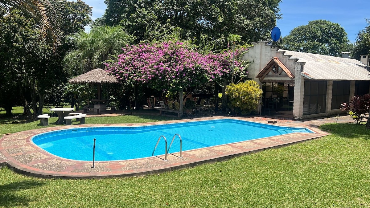 Disfruta de unos días en familia o con amigos en Casa Campo SC, ubicada al norte a 83km. de Santa Cruz, entre portachuelo y Buena Vista, sobre carretera. Casa rústica finamente decorada, amplios espacios bajo sombra para disfrutar del aire libre. Tiene una zona de fogata, parrilla portatil, caja china y horno a leña. Para los más pequeños, tiene cama saltarina para que se diviertan, pueden disfrutar de ver la pequeña granja, a 500 metros se encuentra el río palometilla.