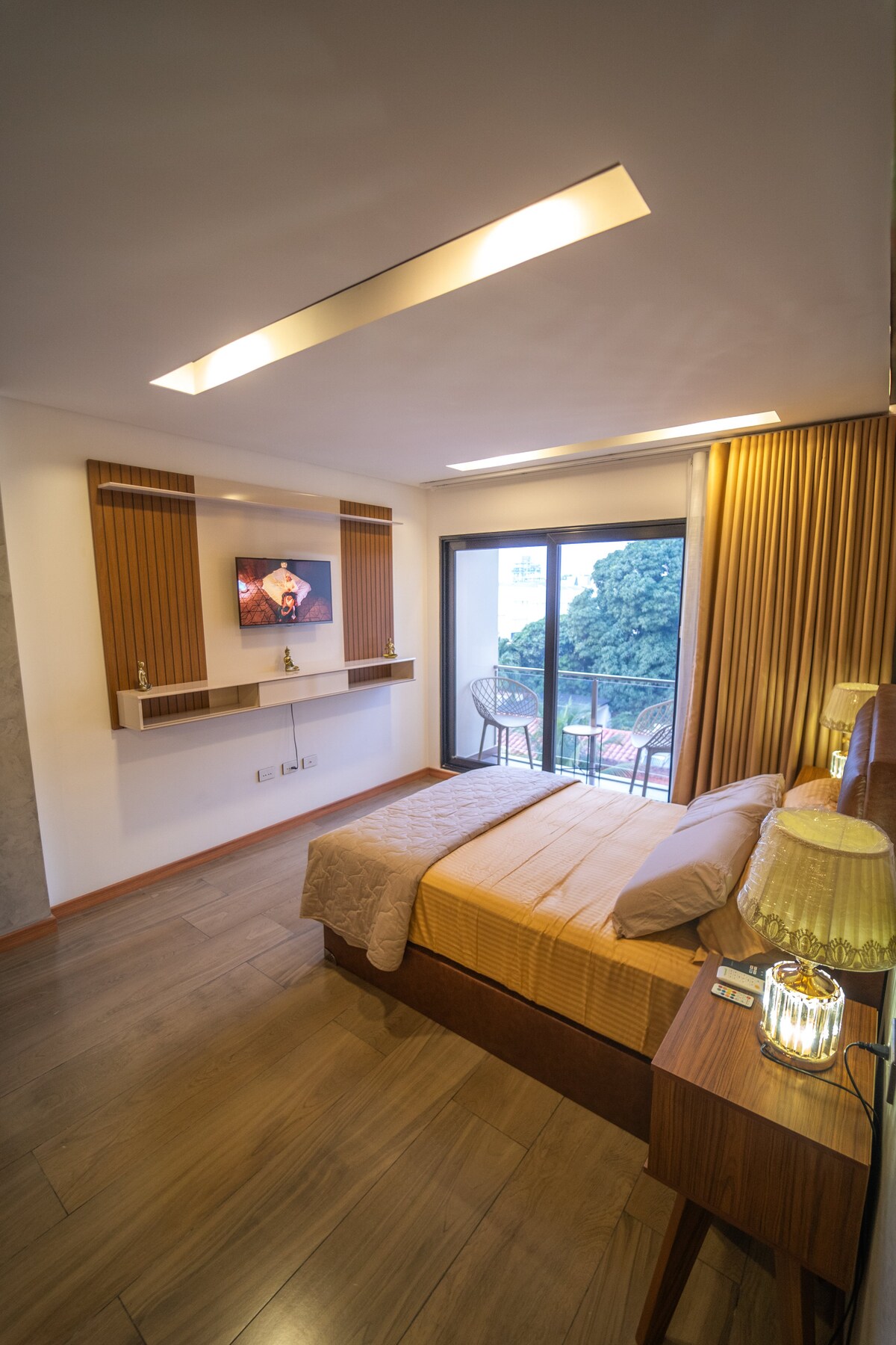 Enjoy a modern and comfortable apartment in the best area of Santa Cruz. It features a balcony with city view, 55" Smart TV with Netflix, A/C, fully equipped kitchen, washing machine, bed and sofa bed, and a mirrored wardrobe. Shared amenities include: pool, jacuzzi, dry and steam sauna, gym, coworking areas, meeting rooms, cinema, foosball, billiards, and BBQs with TV and minibar. Located in Equipetrol, close to cafés, restaurants, and shopping. Book now!