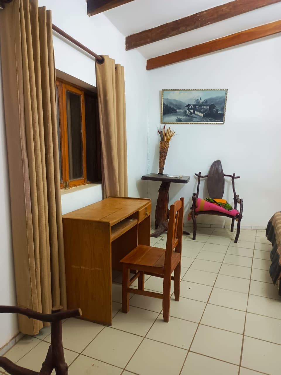 Enjoy a partial view of the Amboro mountains, with birdsong in the morning and the sounds of the small forest at night. Sometimes nocturnal monkeys or early-rising agoutis may appear. Though only 4 blocks from the main square, the place is quiet, away from traffic noise. With advance confirmation, tours to the north side of Amboro National Park can be arranged.