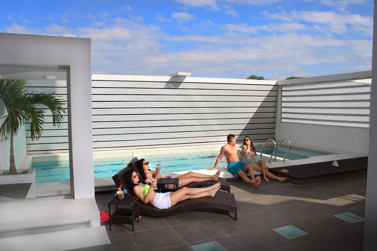 Suite con cama “KING BED O TWIN “ Baño moderno Cable tv y WIFI Acceso a suana y jacuzzi Acceso a terraza y piscina Desayuno incluido Aire acondicionado Ladera Ropero