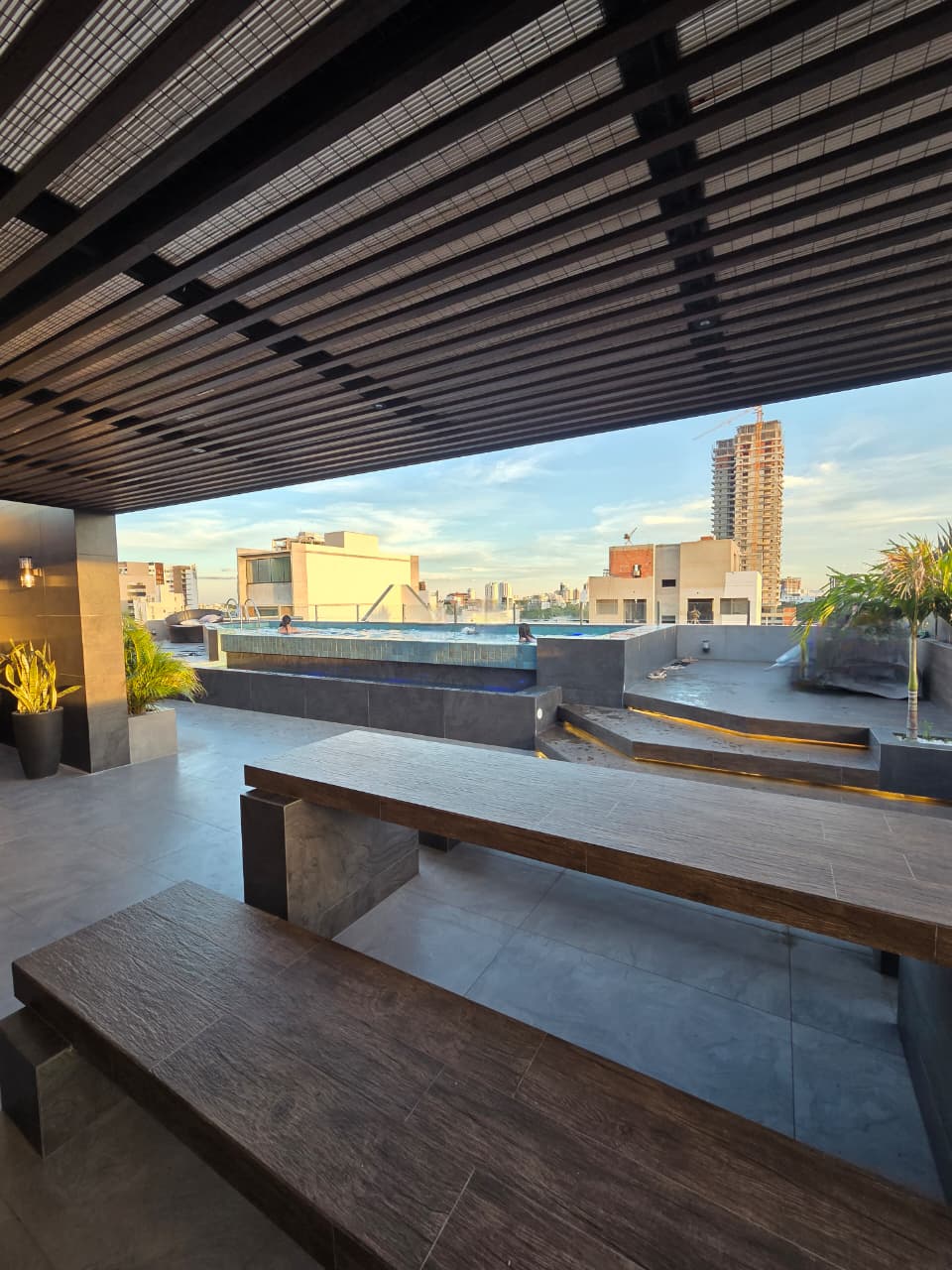 Disfruta de la elegancia y confort en nuestro departamento en la mejor zona de Santa Cruz. Este espacio moderno ofrece TV de 50", wifi de alta velocidad, y acceso a increíbles amenidades: piscina, jacuzzi, sauna, gimnasio, sala de juegos, churrasqueras y cine. A pocos pasos de restaurantes, bares y centros comerciales, es la opción ideal para quienes buscan una estadía exclusiva. ¡Reserva ahora y vive una experiencia única de lujo y comodidad!