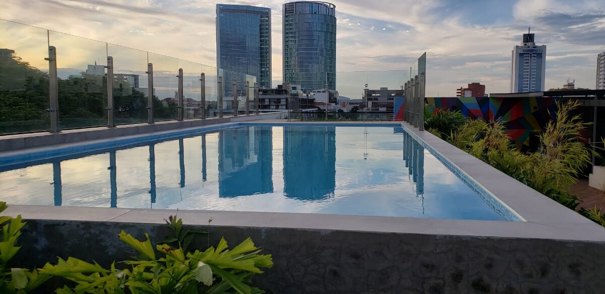 Monoambiente completamente amoblado con ubicación estratégica. ¡Tu visita a Santa Cruz de la Sierra será inolvidable! Nuestro Studio está preparado para que aproveches al máximo tus días en la ciudad. Equipado con una cama de 2 plazas y un cómodo sofá-cama, área de guardado, cocina, heladera, microondas, y un baño. En el edificio contamos con espacios de Co-Work, lavandería, áreas sociales cerradas y abiertas y una amplia piscina con vista al barrio mas lindo de Santa Cruz.