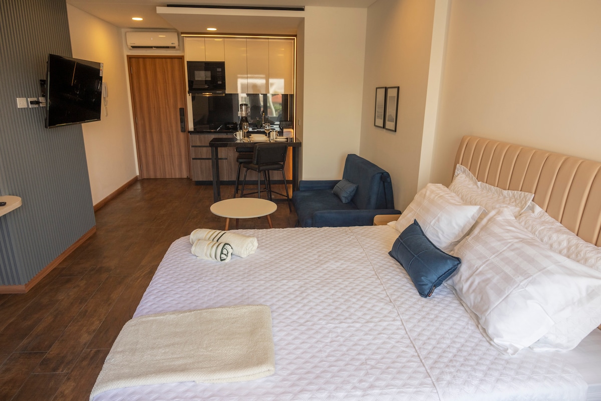 Vive la experiencia POX en este elegante monoambiente en la zona más exclusiva y segura de Santa Cruz. Ideal para viajes de negocios, escapadas en pareja o estadías cortas con todo el confort que mereces. A pocos pasos encontrarás restaurantes gourmet, cafés boutique, supermercados y vida nocturna. A solo 5 minutos del Ventura Mall y a 25 minutos del aeropuerto internacional. No somos solo un host: te ofrecemos atención personalizada 24/7, recomendaciones locales y beneficios exclusivos.