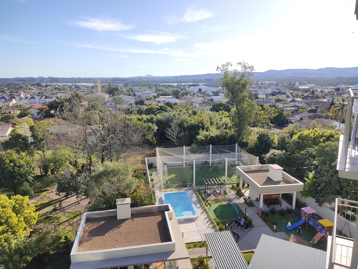 Beautiful brand new 01 bedroom apartment. It is super cozy, fully equipped and equipped, with split air conditioning, view, barbecue. Beautiful sunset over Golden Lake. It is well located, close to the center, close to a gas station, supermarket, pharmacy and fruit shop. Secure condominium with parking space and backyard. Perfect for planning your short or long term visit/travel.