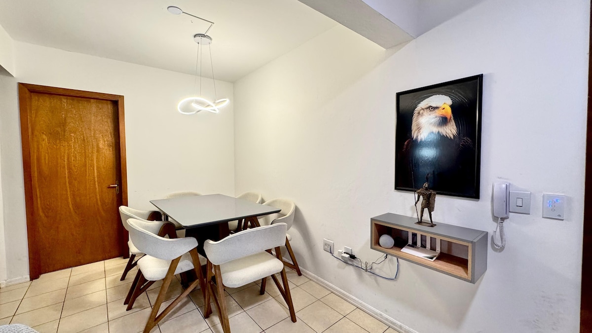 Apartamento bem localizado, equipado com ar condicionado, TV e cozinha planejada. garagem inclusa, ideal para executivos, casais com até dois filhos. Acomoda 4 pessoas. Sendo uma cama casal e um sofá cama. Possui WIFI - churrasqueira. Decorado para tornar o local aconchegante em sua estadia.