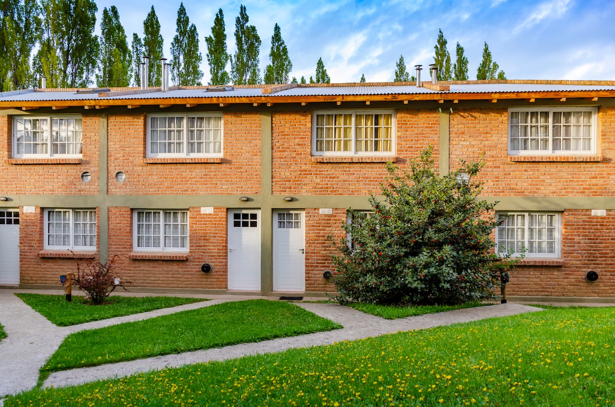 Los departamentos son de construcción tradicional, con ladrillos a la vista. El flujo interno se logra en dos plantas. Dos habitaciones, en la planta superior; cocina comedor y baño en la planta inferior. El desborde es hacia una área en común, completamente parquizada.