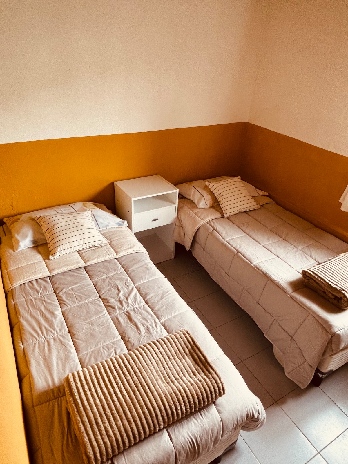 Disfruta de éste espacio con decoración vintage pensado para tener una acogedora estadía. Planta baja: Ambiente amplio con cocina completa, lavarropas, heladera, parrilla interior, baño, sommier de 1 y 1/2 plaza con cama marinera, mesa y sillas de comedor, TV led con crhomecast. Planta alta: Dormitorio Loft con sommier de 2 plazas, escritorio y Smart TV. Patio/Garage delantero y patio trasero pequeño con tobogán (compartido con los dueños). Sillas de camping con parrilla portátil.