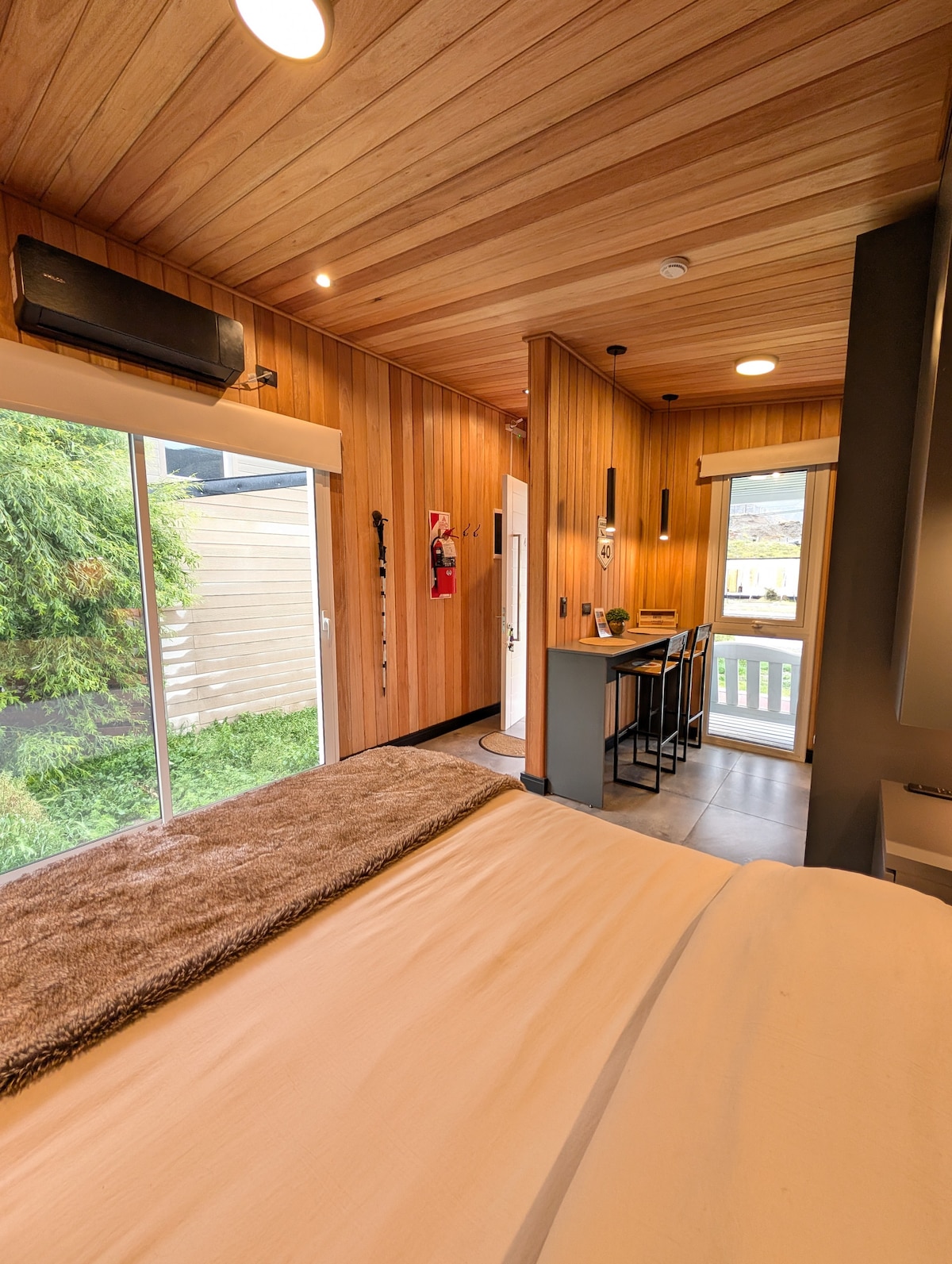 Este alojamiento único y diafano tiene mucho espacio para que disfrutes con los tuyos. Tenes una unidad totalmente equipado con cocina completa con heladera microondas cocina vitroceramica, jarra electrica tostador, exquisita vajilla con lujosa barra de madera y banquetas de primera calidad equipo de sonido, tv smart y hasta luz dimerizable! Baño completo -mampara de vidrio, bidet de mano etc - incluimos blanqueria de primera calidad y servicio de limpieza asi como recepcion tmb hablamos ingles!