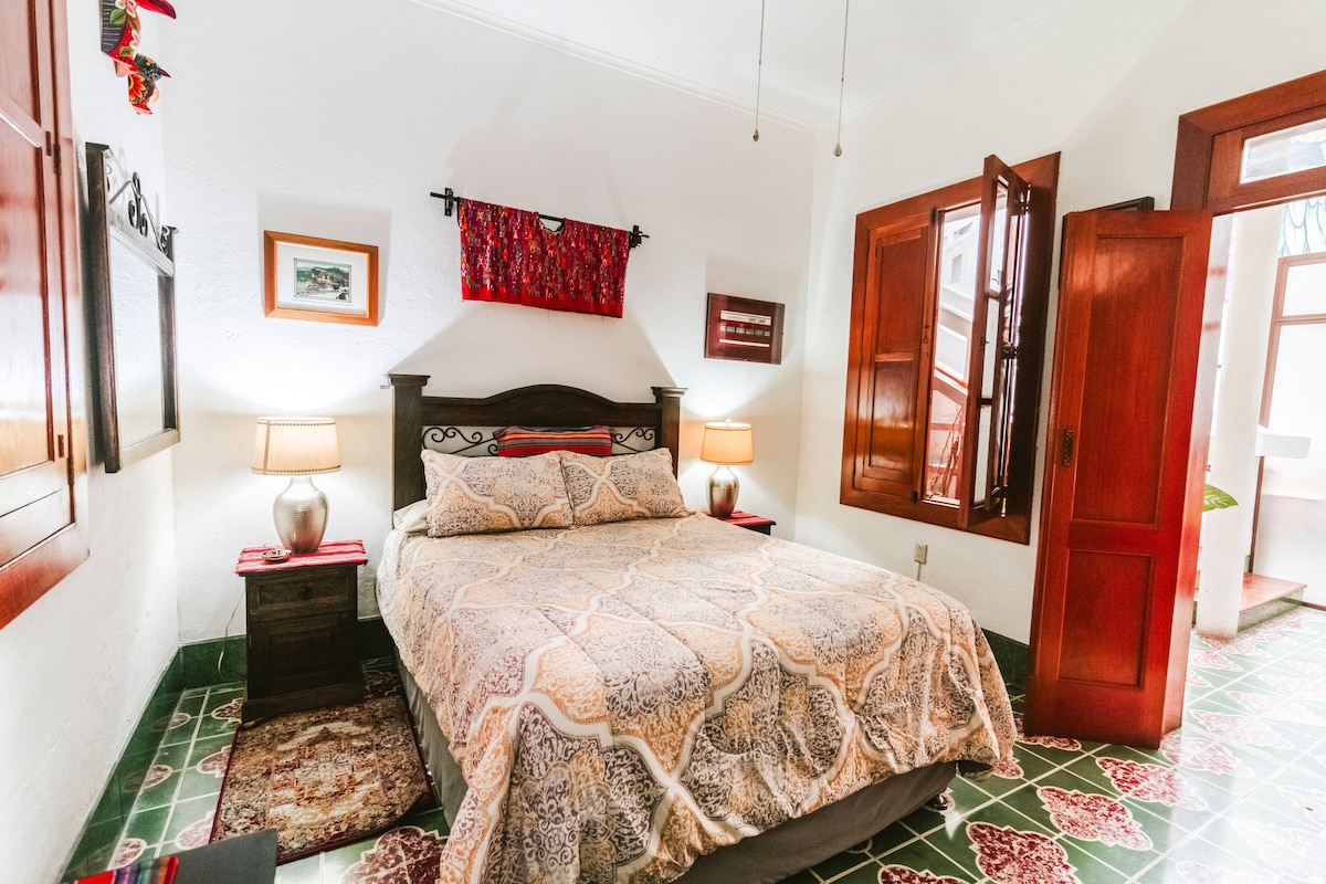 Apartamento completo con un lindo jardín interno. Podrás aprovechar al máximo tu estadía al estar en un lugar céntrico y al mismo tiempo relajarte en un lugar tranquilo con jardín. Ubicado a 20 minutos del aeropuerto Internacional La Aurora, a 10 minutos de zonas de restaurantes, hospitales y cerca de transporte público, que lleva directamente al Centro Histórico. A la par del alojamiento se encuentra una tienda de conveniencia y a dos cuadras se encuentra un supermercado Torre Express