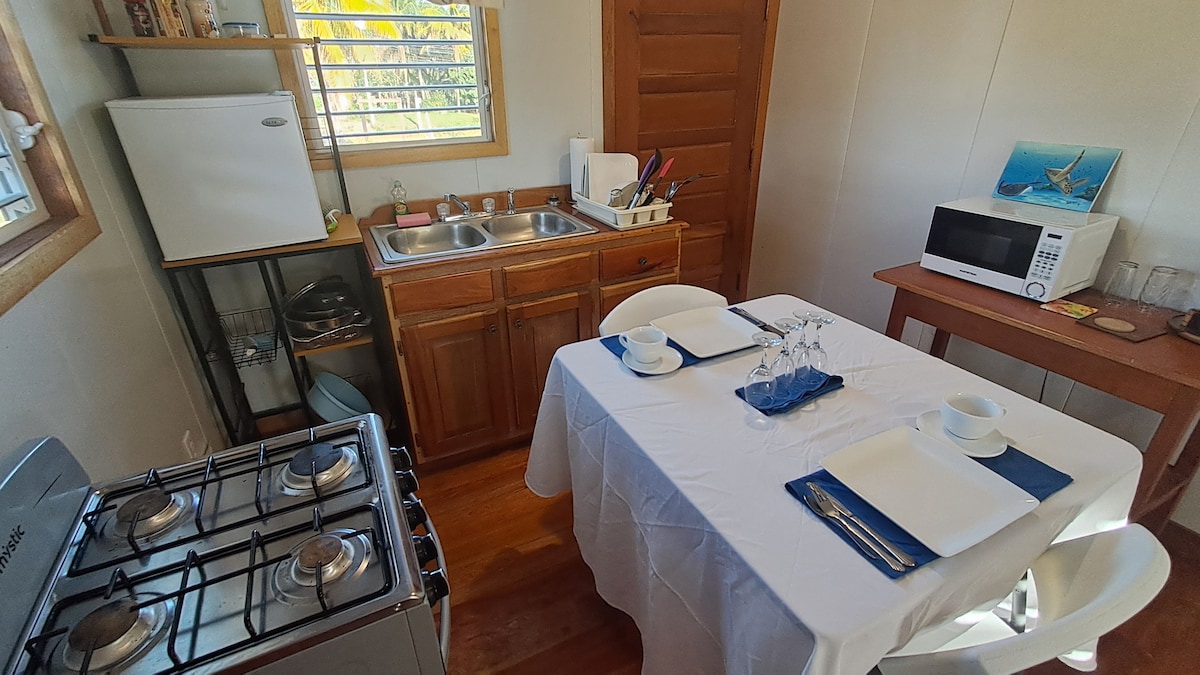 Experience tranquility in our charming yellow cottage near Spanish Lookout, set in a lush, jungle-like setting. Perfect for families or groups, the cottage features a fully equipped kitchen and comfortably accommodates up to 6 guests. The master bedroom boasts a king-size bed, while the second bedroom includes a bunk bed with queen-size mattresses. With modern amenities including laundry facilities, it's an ideal retreat for those seeking both comfort and serenity in a beautiful natural space.