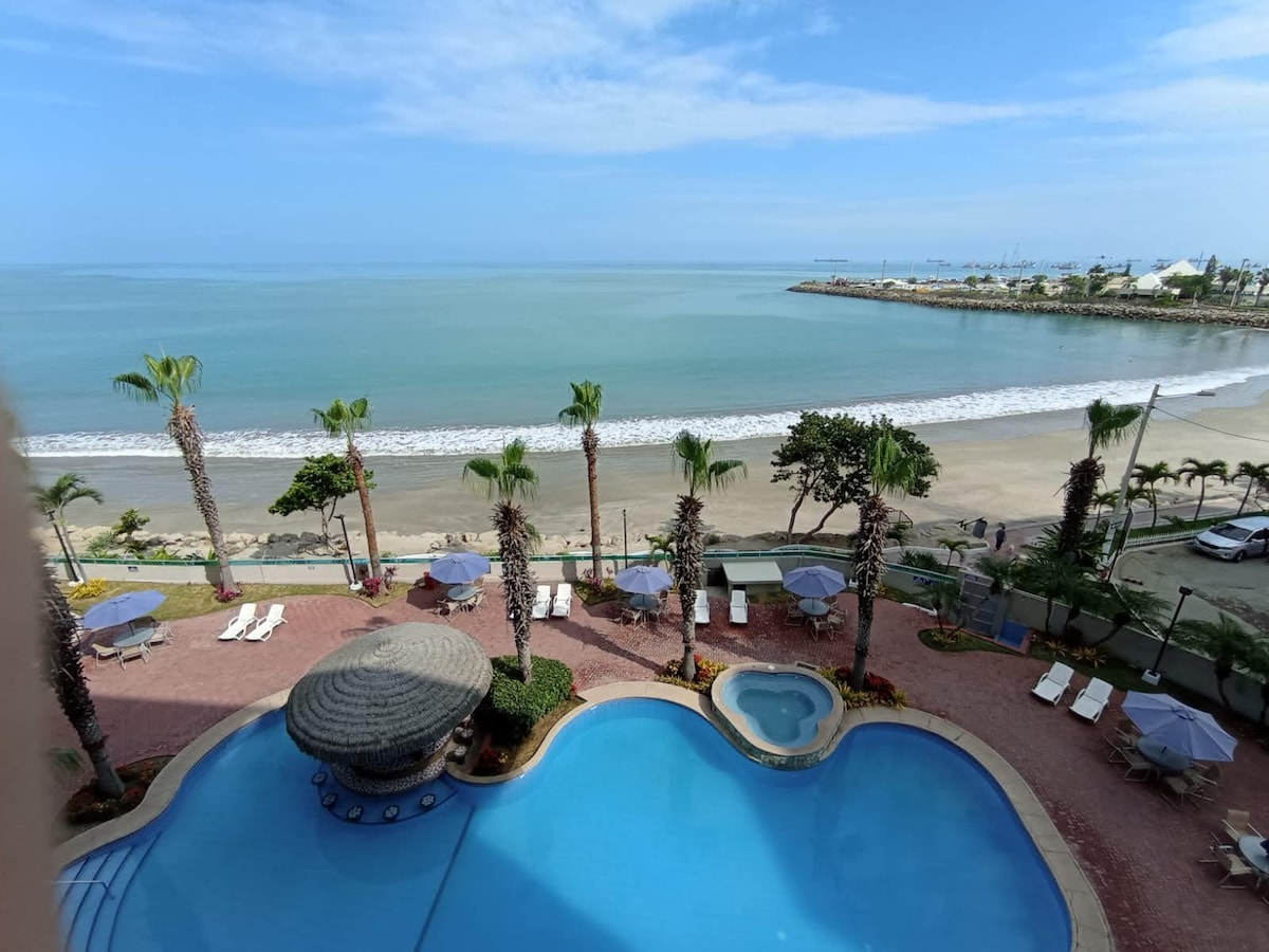 Beautiful spacious apartment in front of the beach. Wonderful ocean view. Located at Malecon Principal of Salinas, close to bars and restaurants. You can enjoy the sea with multiple activities such as swim, waverunner, boat ride, water parks and water sports. Reservations over 28 years old...PARTIES PROHIBITED