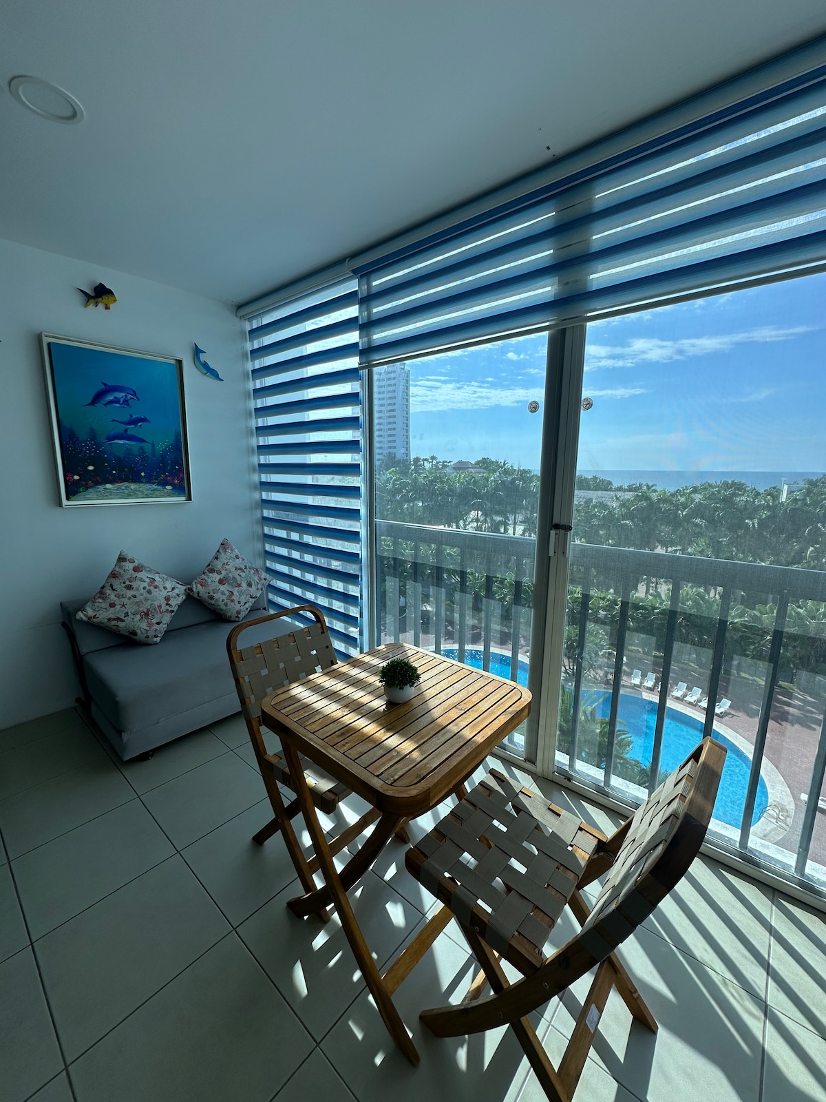 Cómodo departamento en el piso 7 con espectacular vista al mar, hermosa playa, totalmente amoblado. Contamos con 3 dormitorios, 2 baños completos con agua caliente, aire acondicionado, comedor, sala con sofá y Tv, wifi, refrigeradora, cocina completa, ventilador, balcón con bonita vista al mar, 2 piscinas para niños, 1 piscina para adultos. Estamos en el sector de la Milina. El condominio se llama Torre Oceánica y estamos a 1 cuadra de la Hostería el Faro y 4 cuadras del Supermaxi.