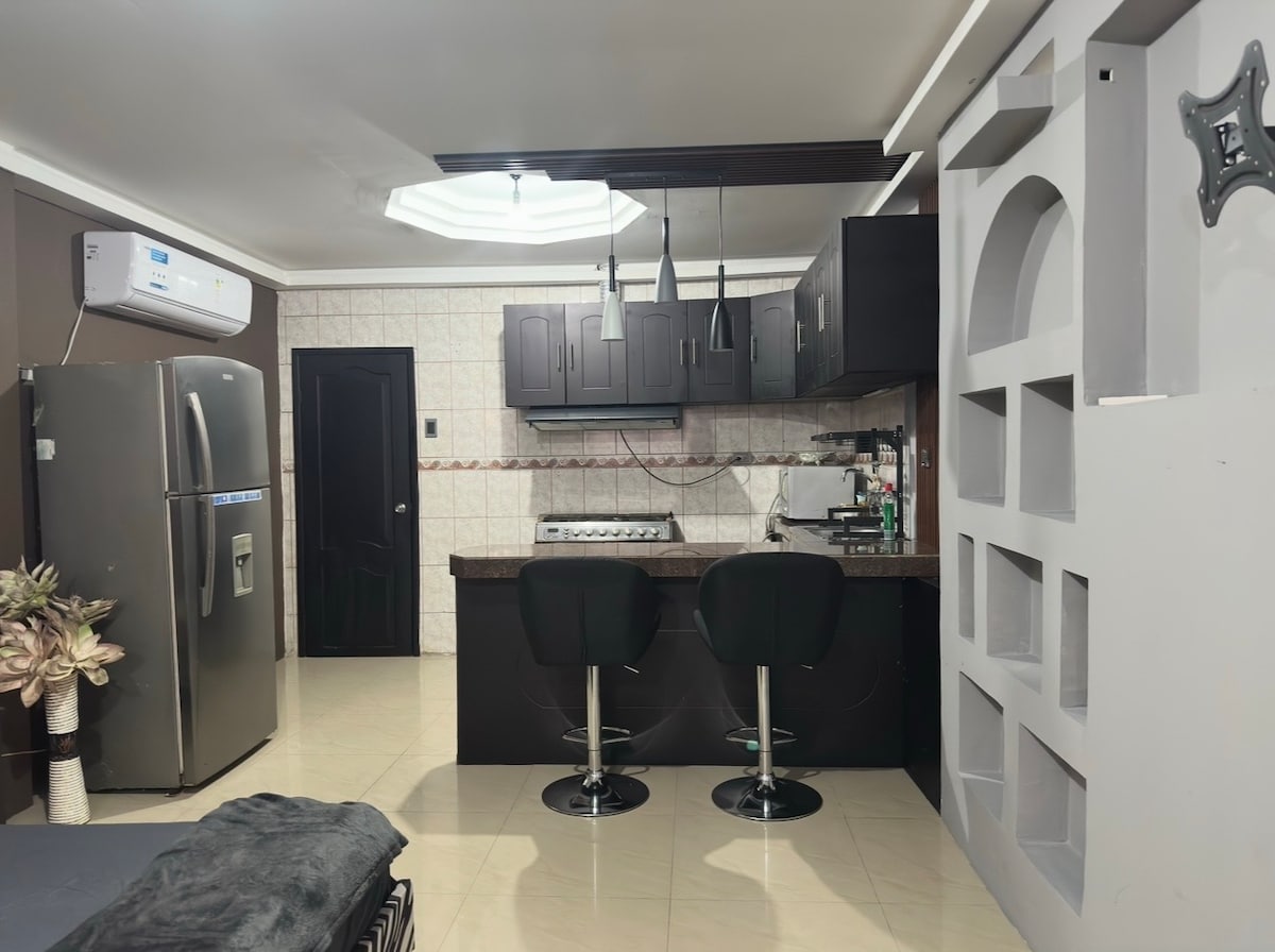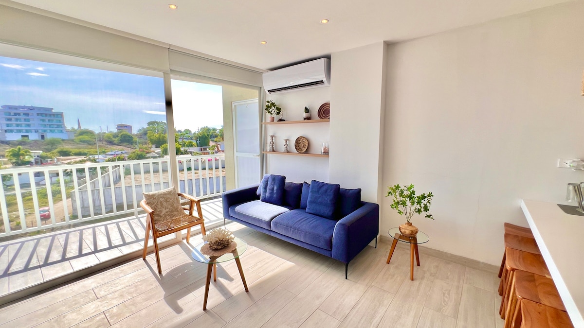 Tómate un descanso y relájate en este tranquilo departamento. Suite 3C Sunrise, ideal para parejas o familias pequeñas (2 a 4 personas). Ubicada a pocos pasos de la playa de Chipipe, combina confort y estilo con un dormitorio master, dos baños completos, sala con sofá cama, cocina equipada, Smart TVs, WiFi de alta velocidad y cerradura digital. Un espacio moderno, funcional y perfecto para disfrutar Salinas con total comodidad.