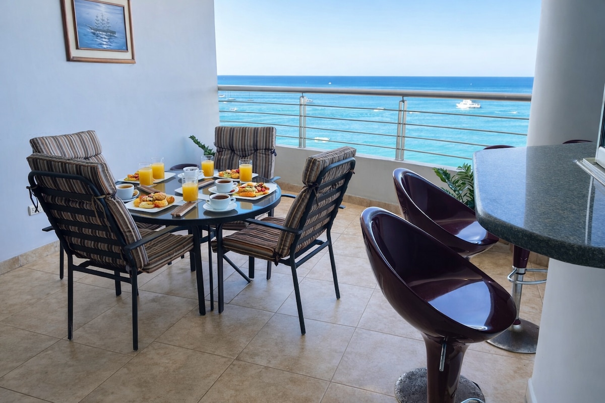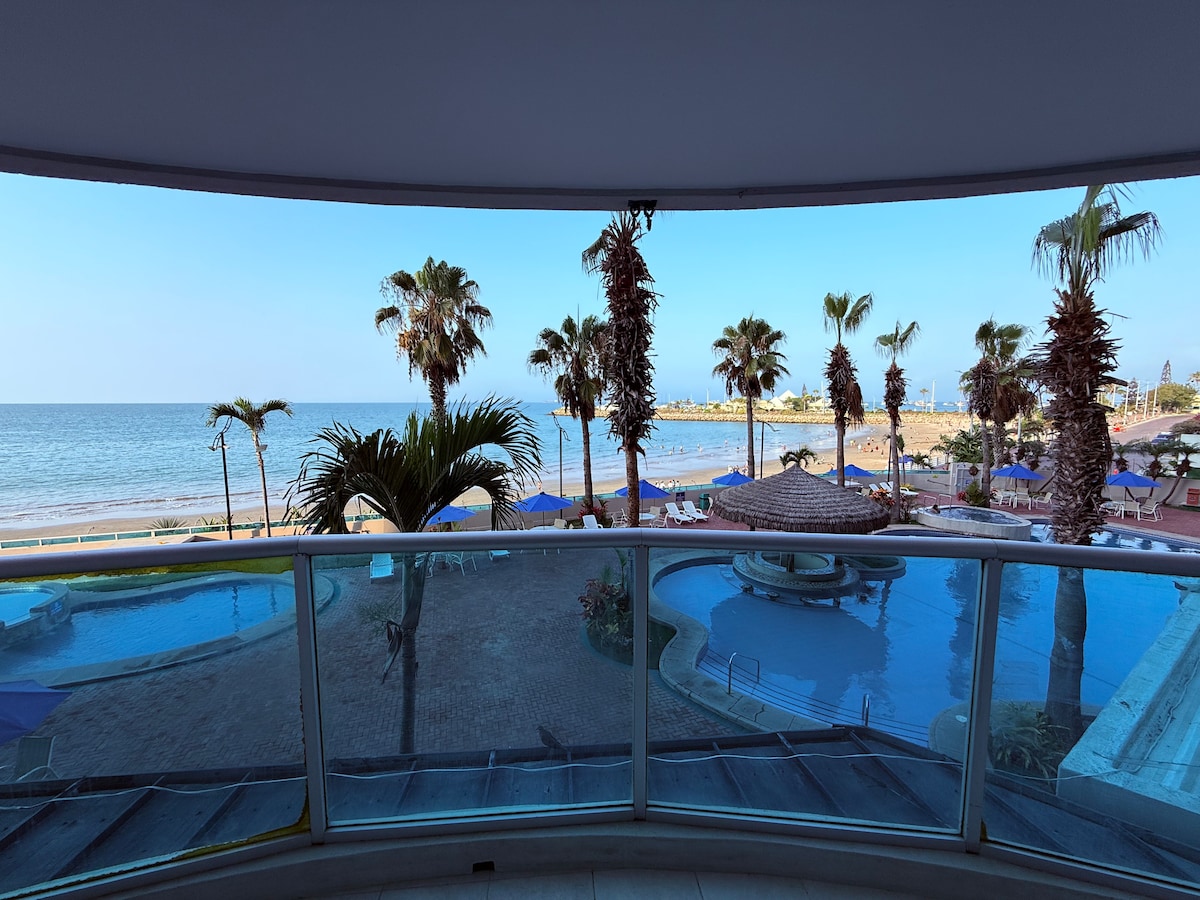 Beachfront with 24h security in the complex, beach and parking. Wake up to the sound of the sea, have coffee with the breeze coming through the window and feel time stand still ♥ ⭐Includes: 3min walk to beach Parking and 360° views WiFi 600Mb Pools, jacuzzi and BBQ area Rooms with A/C and hot water TV: Netflix, Spotify & Alexa Airfryer, coffee maker, microwave, fridge and stove 3 bathrooms, crib, Pet-friendly, elevator Towels, bed linens and toilet paper Guards, cameras and 24h security circuit